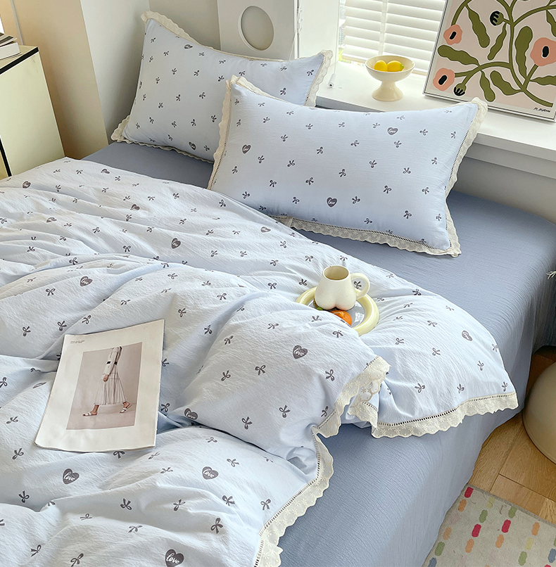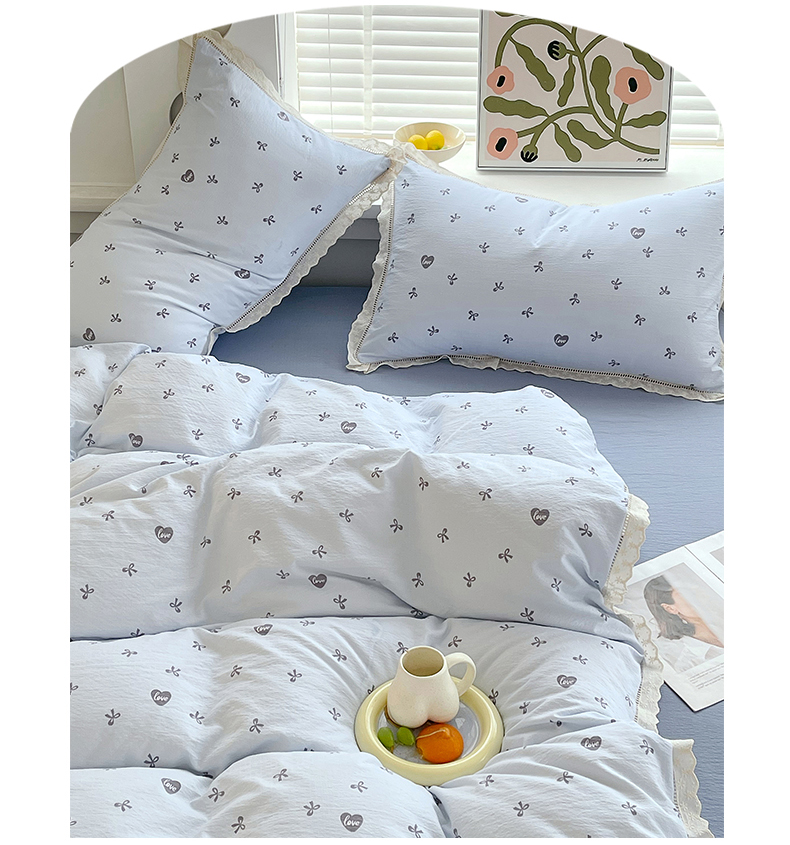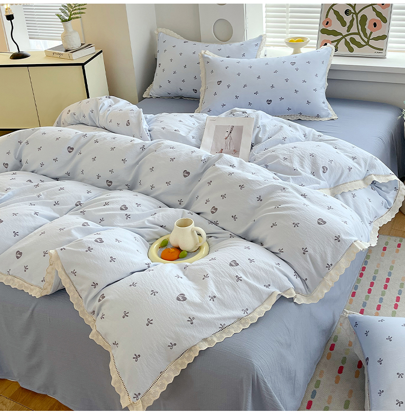 雨彤家纺 2025新款A类高克重云感皱皱双层纱全棉镂空花边款法式四件套-叠拍图 悦枝