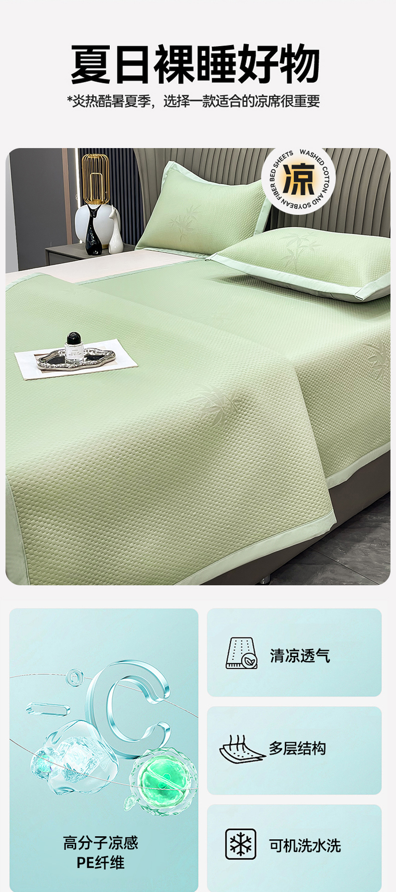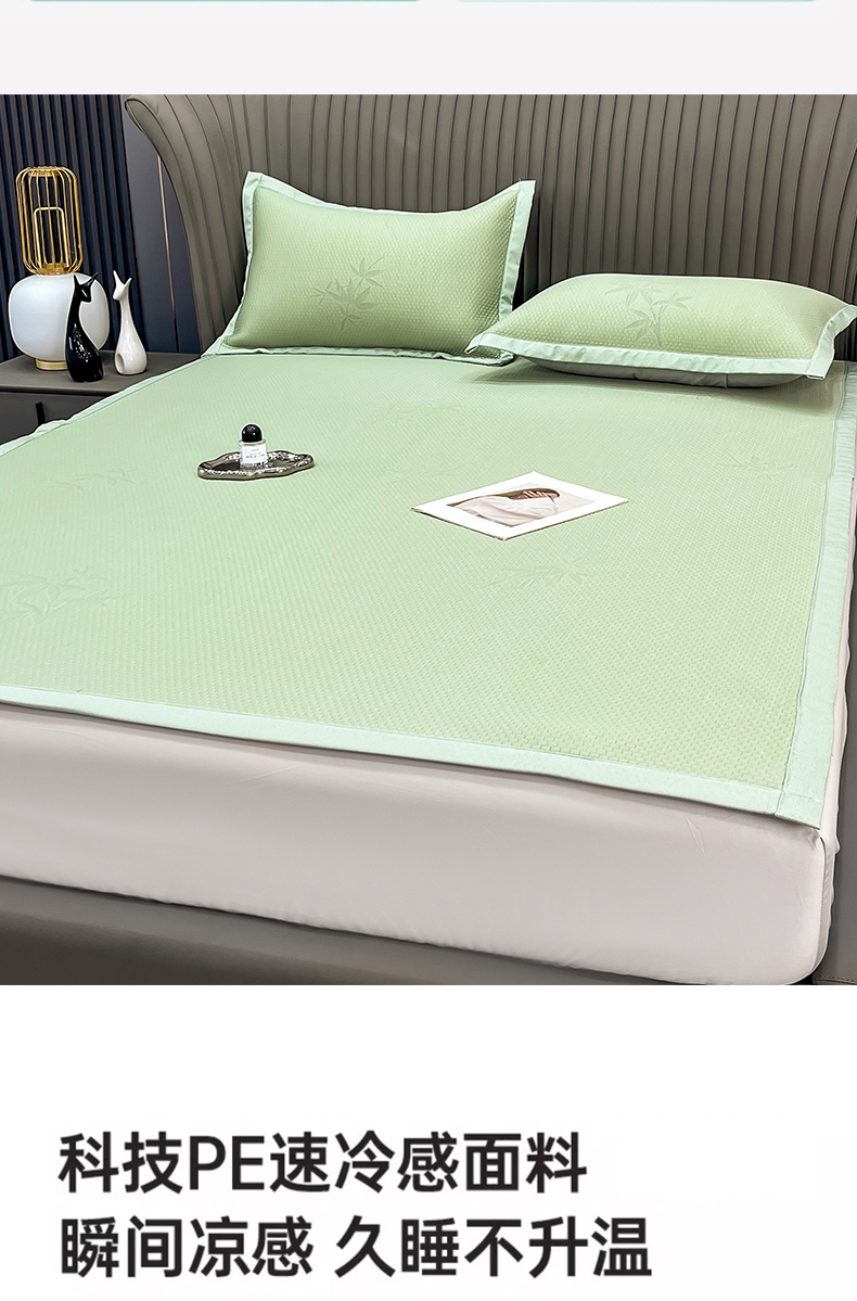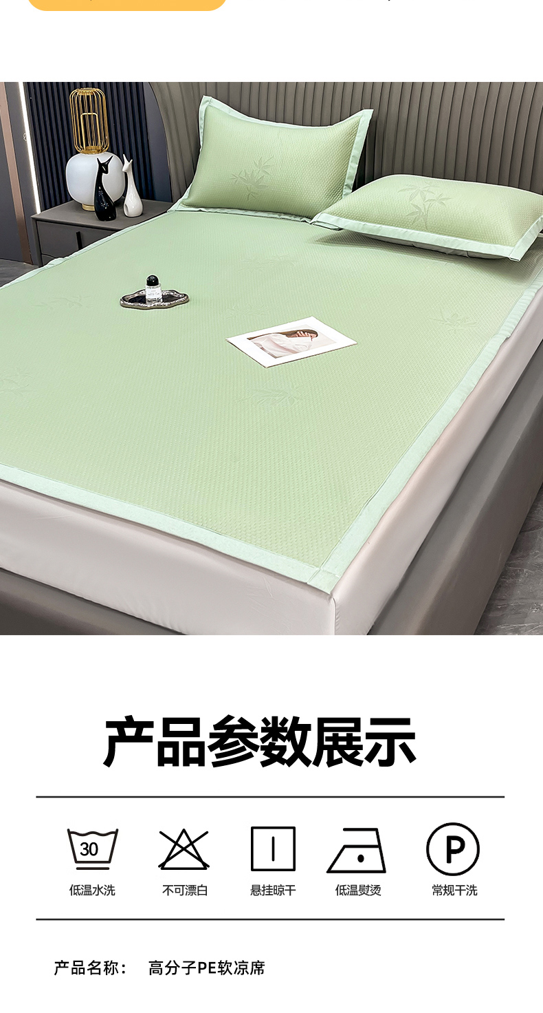 商品名称:瑞兴纺 2025新款高分子PE软凉席绣花款床单款 床单款-枫竹-绿
