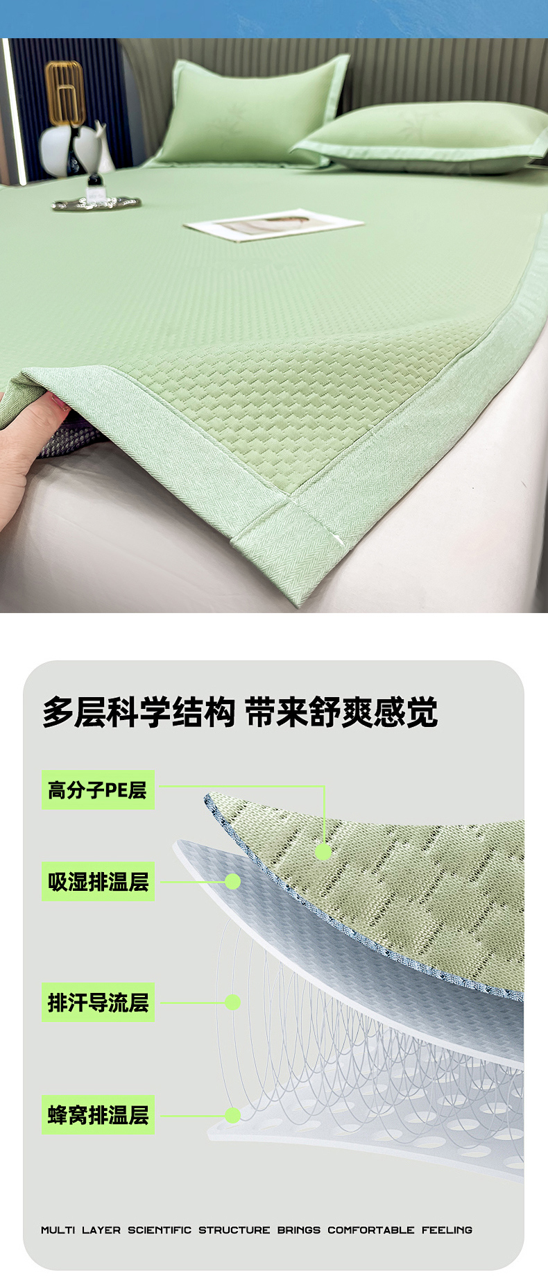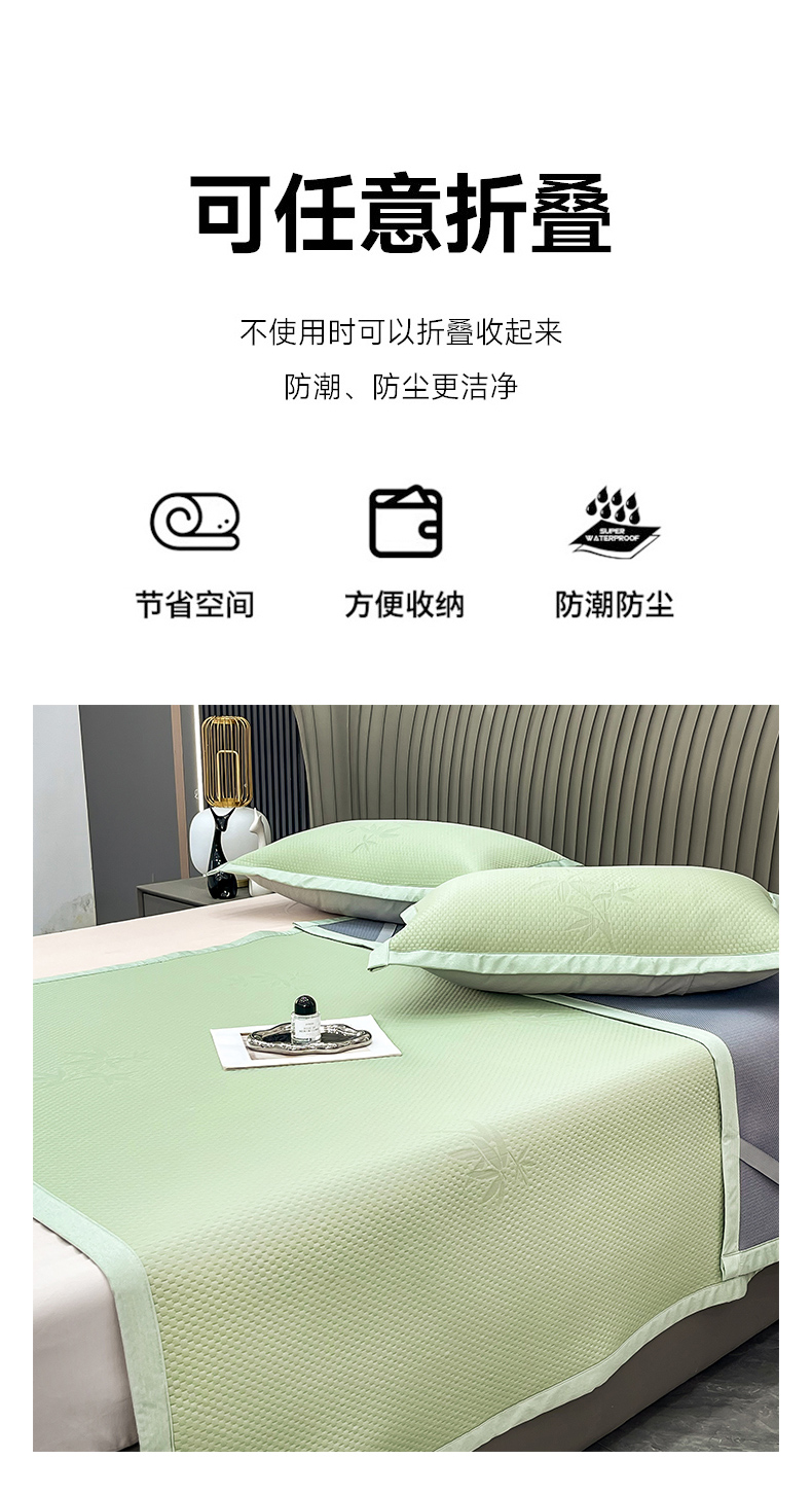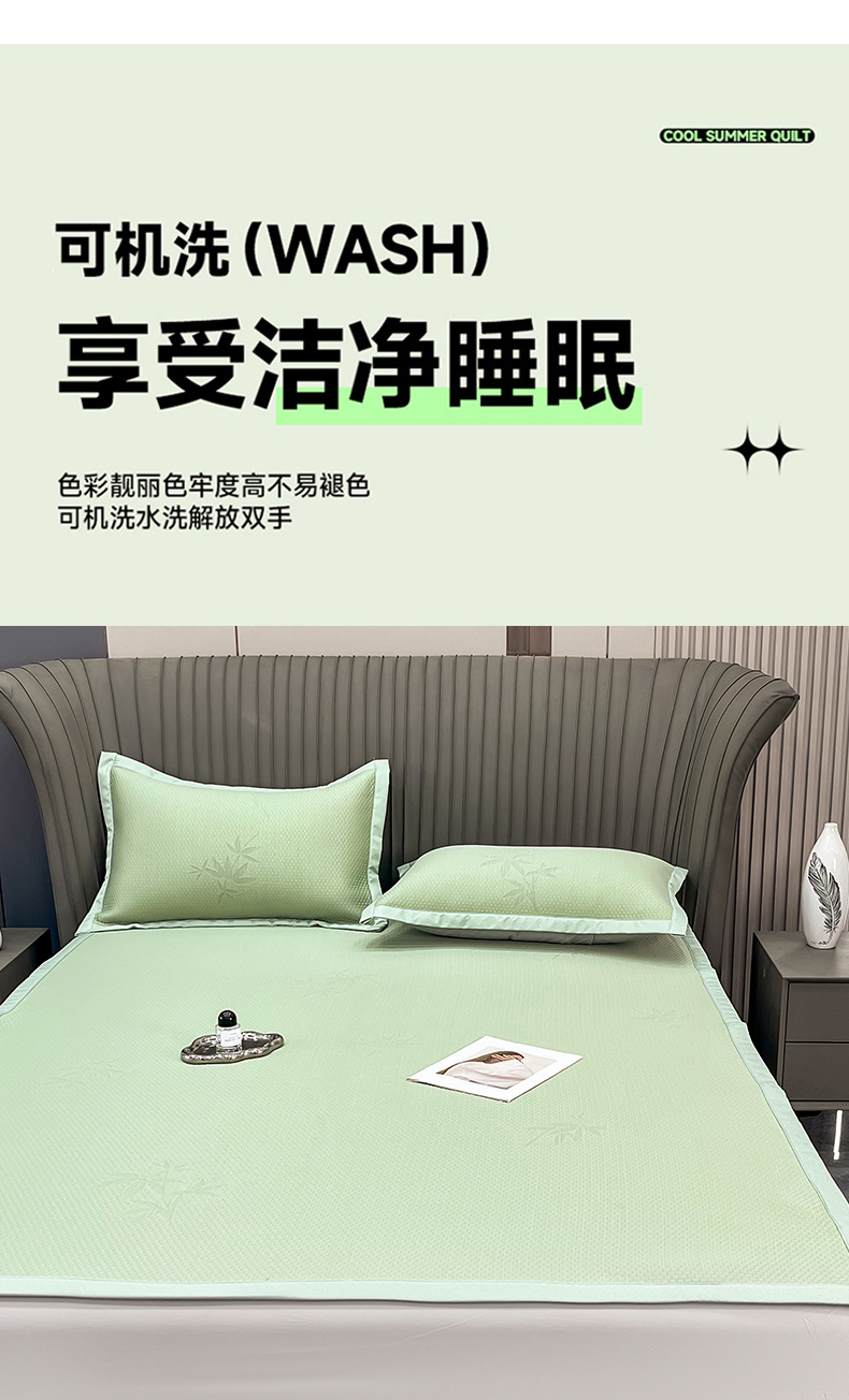 商品名称:瑞兴纺 2025新款高分子PE软凉席绣花款床单款 床单款-枫竹-绿
