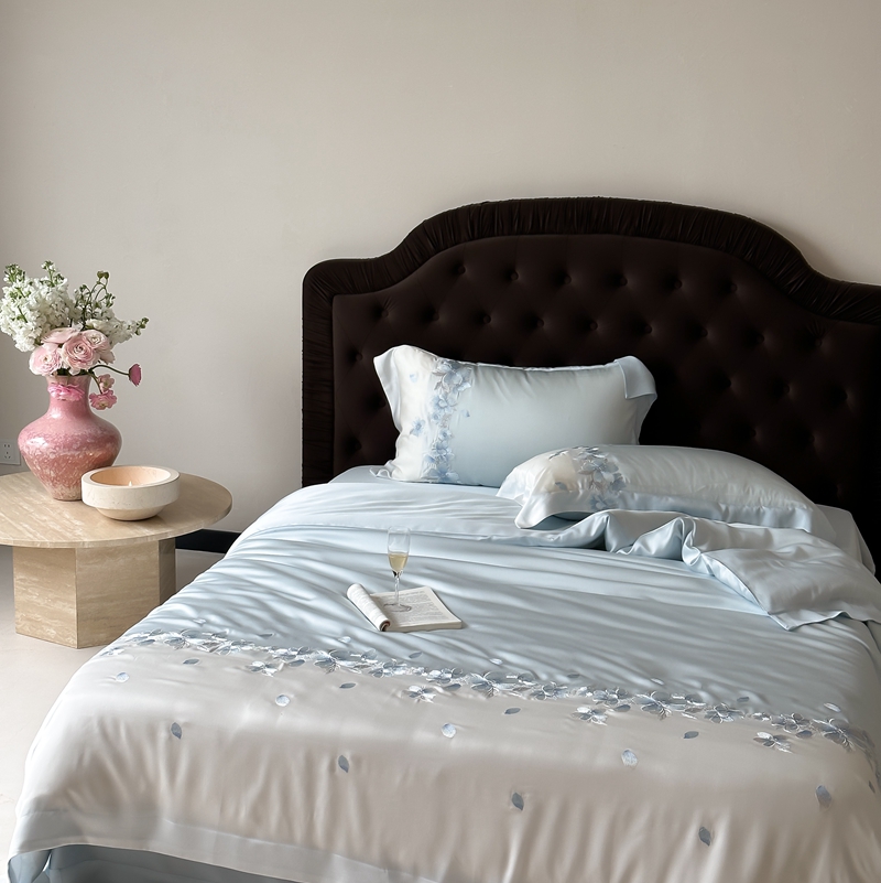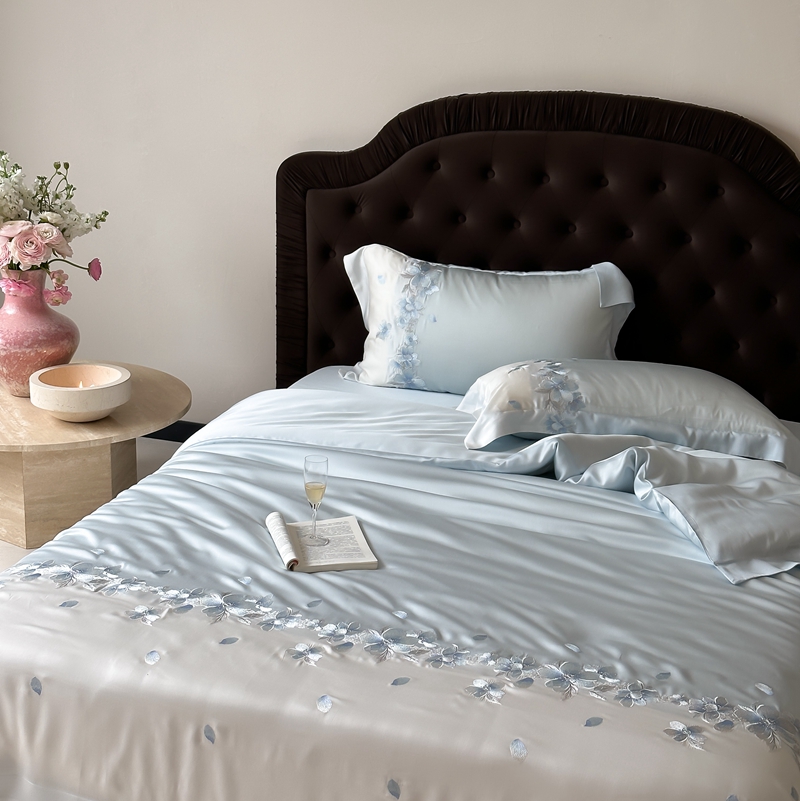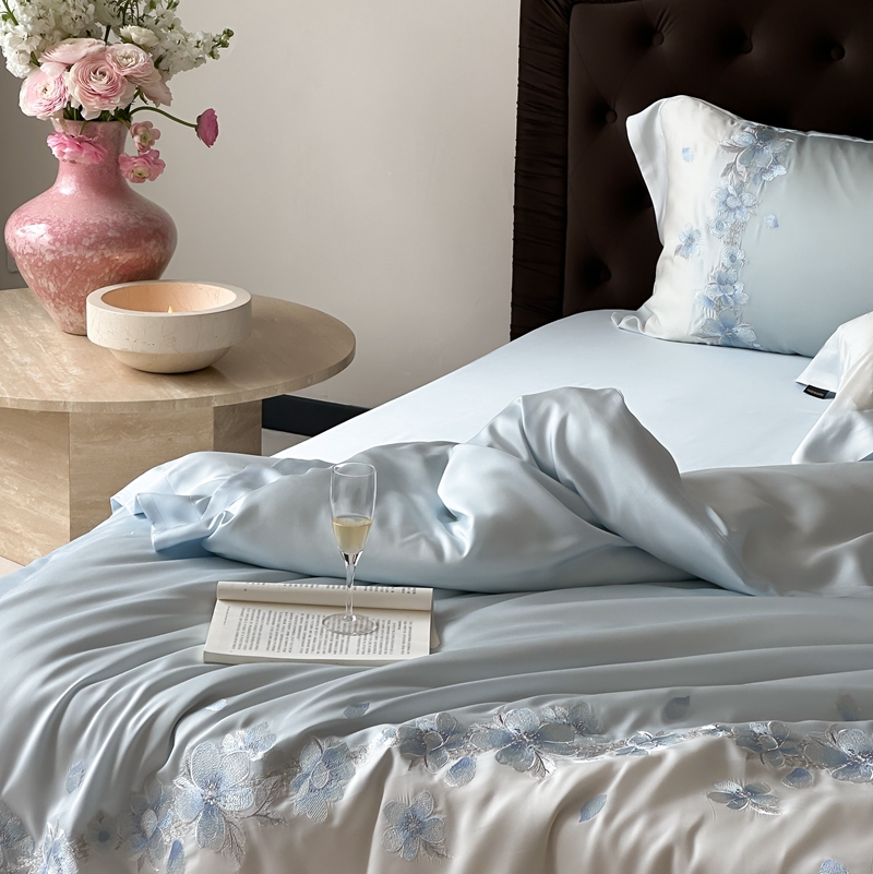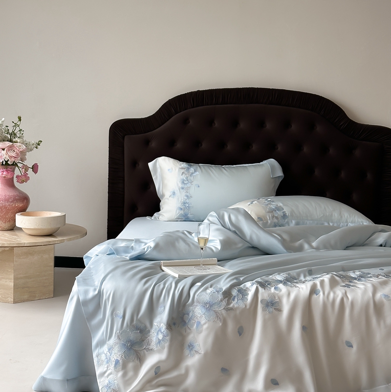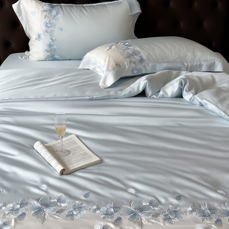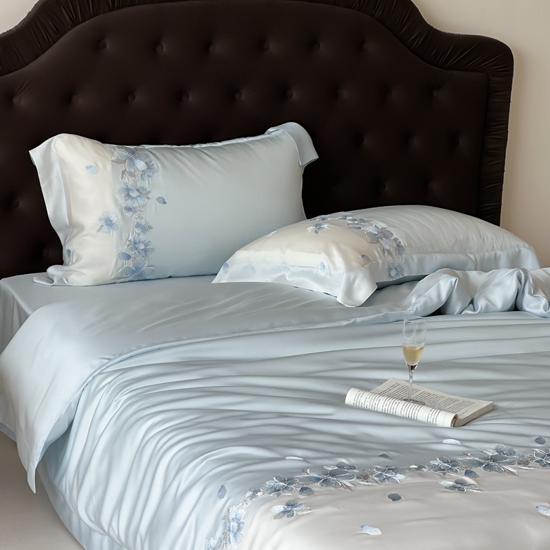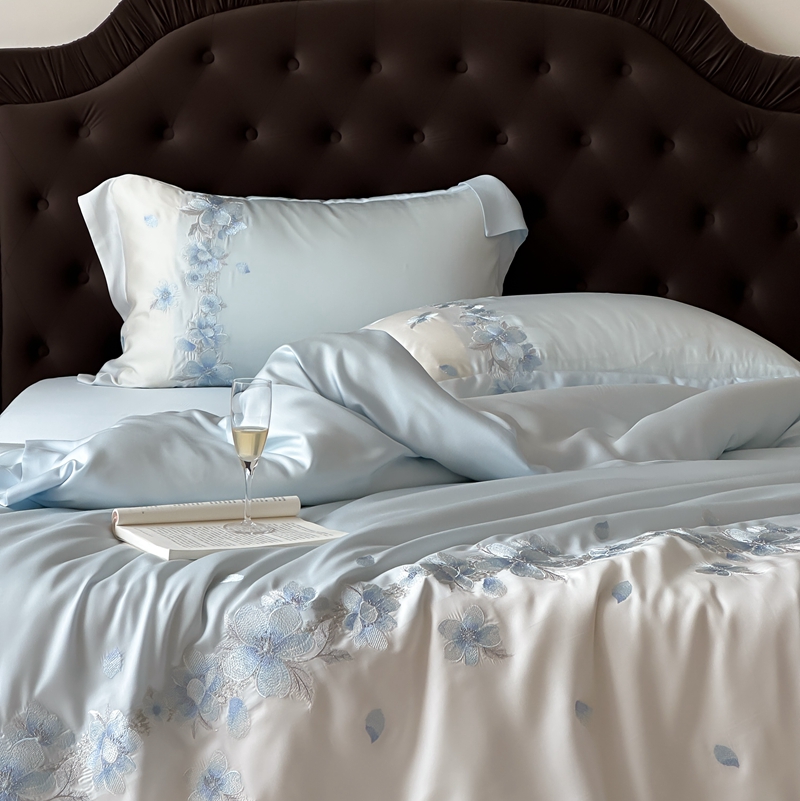 佳汐蓝2025新款60兰精天丝+绣花 花沐语四件套券后不低于398元/418 花沐语-蓝色