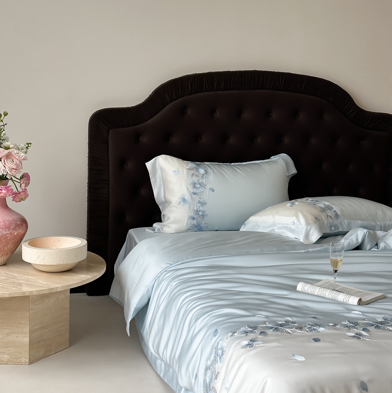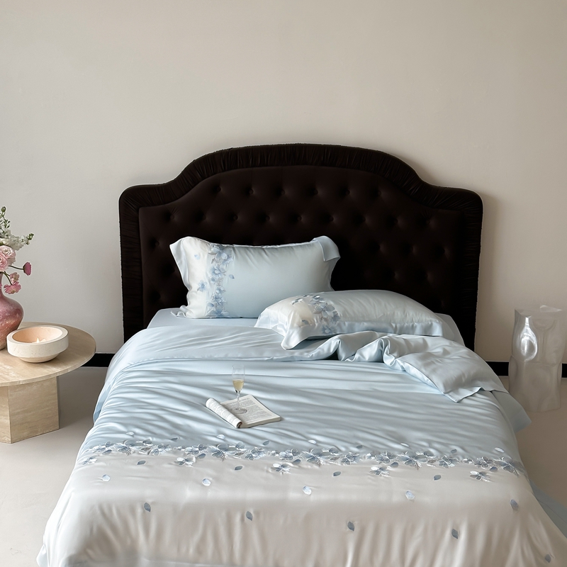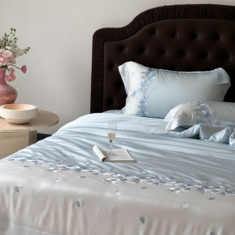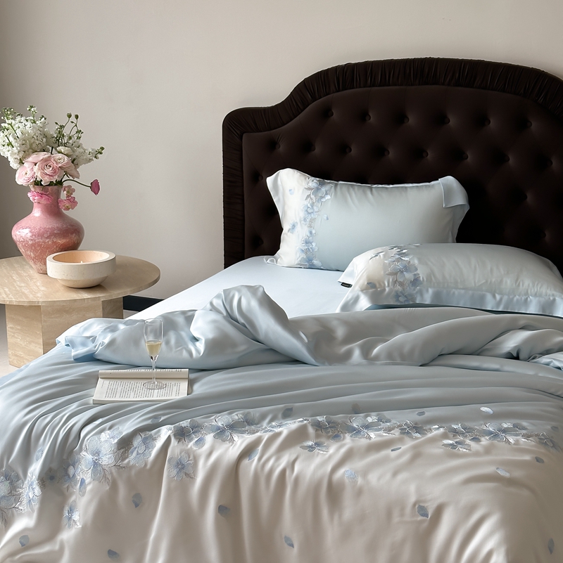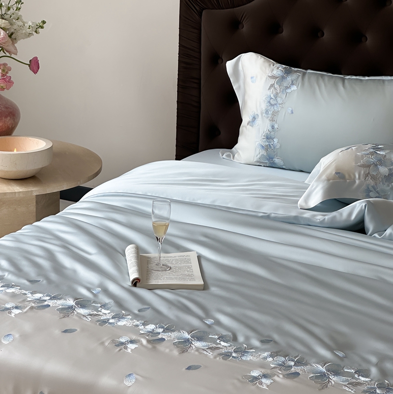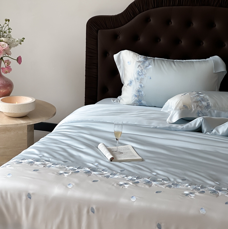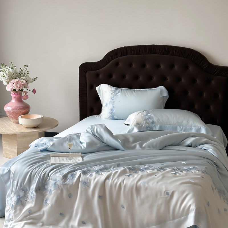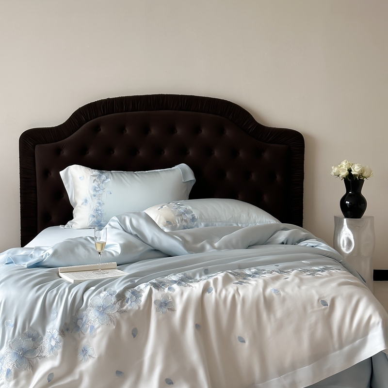 佳汐蓝2025新款60兰精天丝+绣花 花沐语四件套券后不低于398元/418 花沐语-蓝色