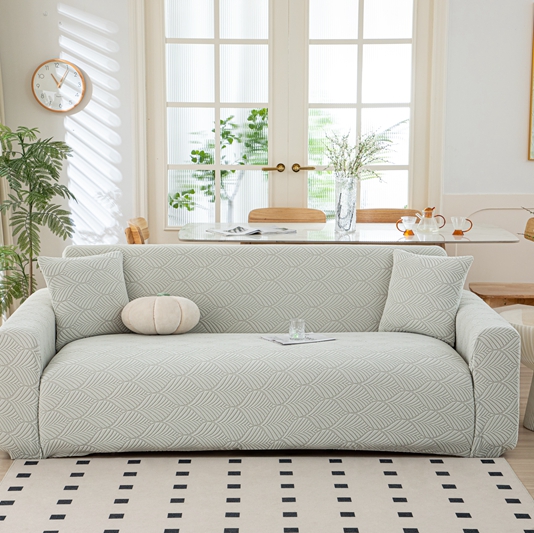 (总)沐沐家纺 2026新款双人位臻品提花沙发套,孔雀蓝,米白,浅灰,浅紫,青色