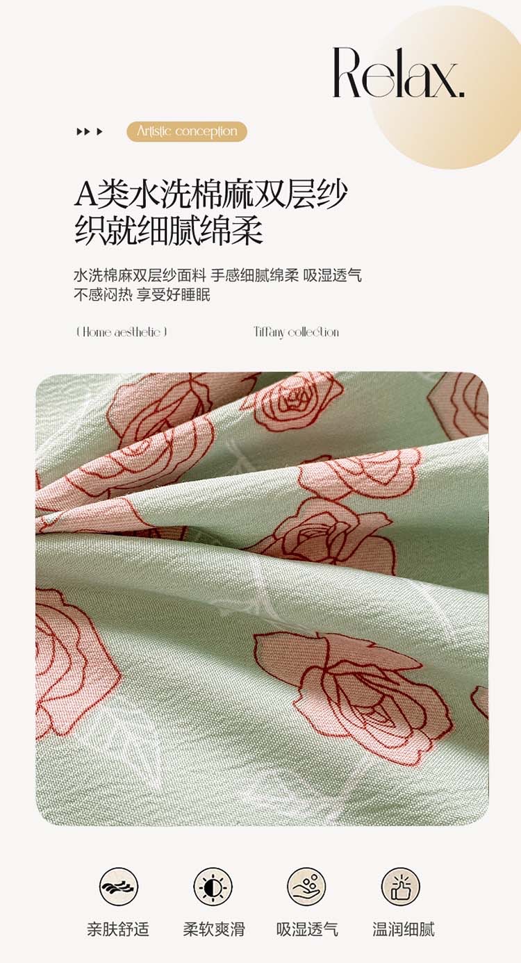 商品名称:(总)畅畅家纺 2025新款A类水洗棉麻双层纱夏被四件套