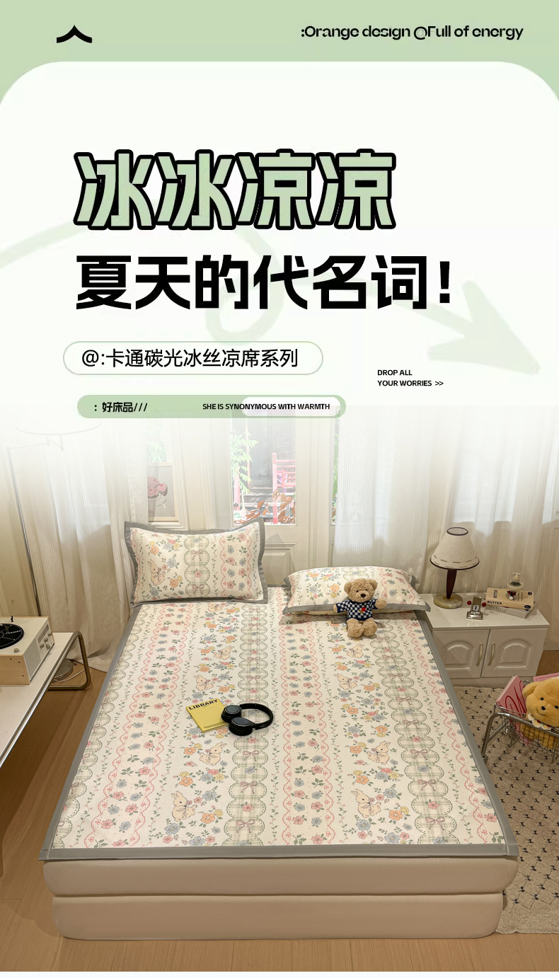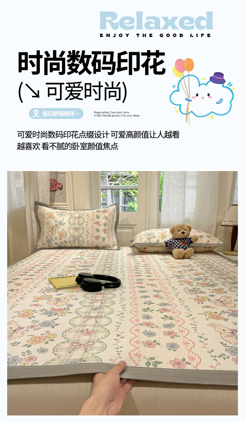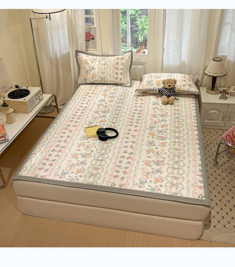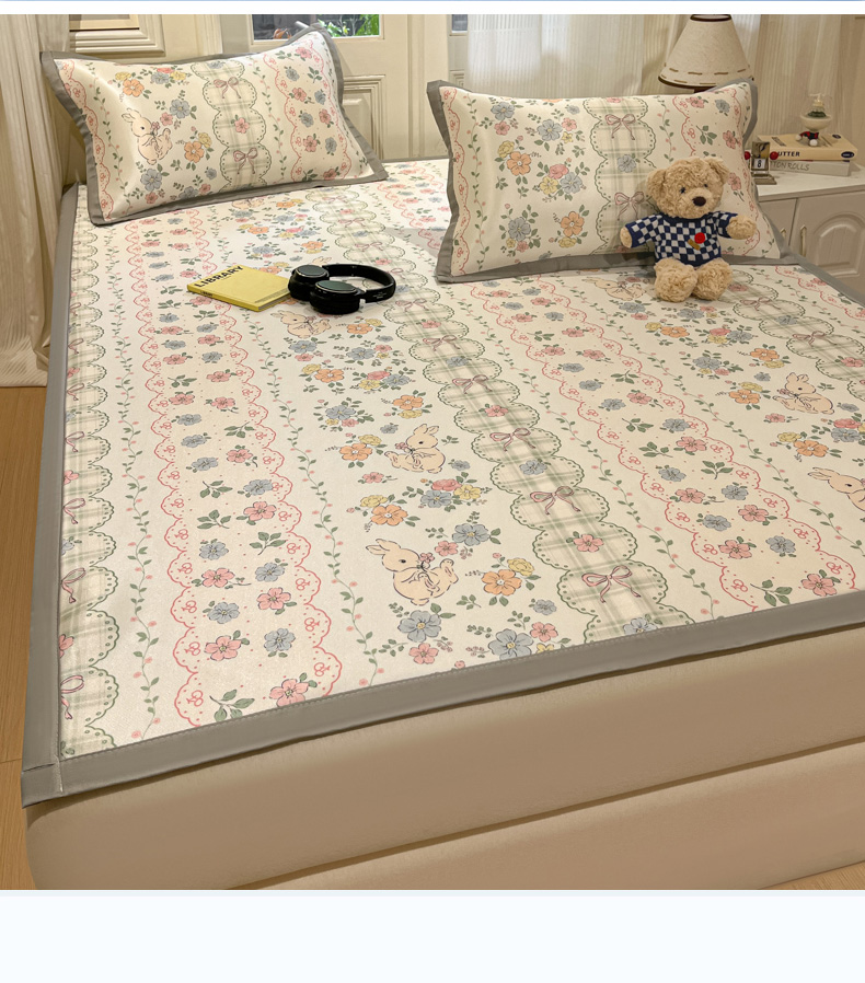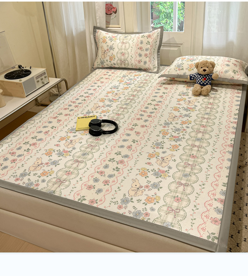 慕澄家纺 2025新款小清新萌宠系列碳光冰丝凉席 花丛兔
