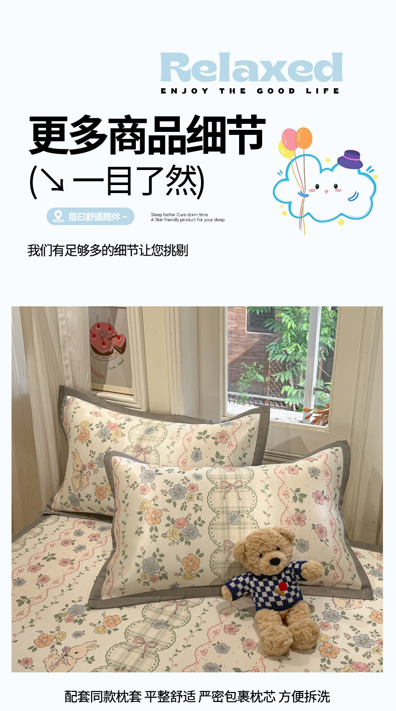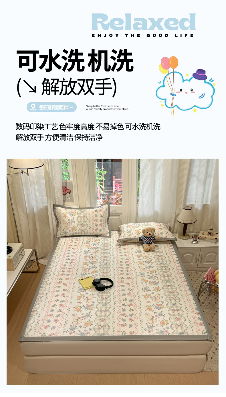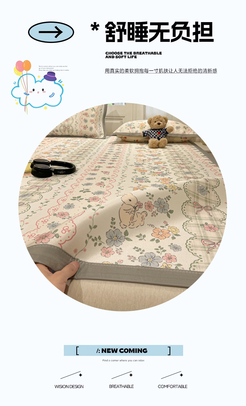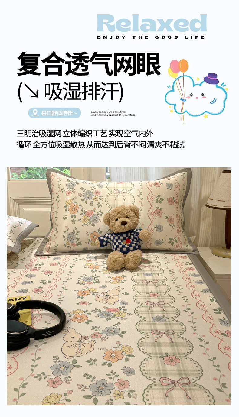 慕澄家纺 2025新款小清新萌宠系列碳光冰丝凉席 花丛兔