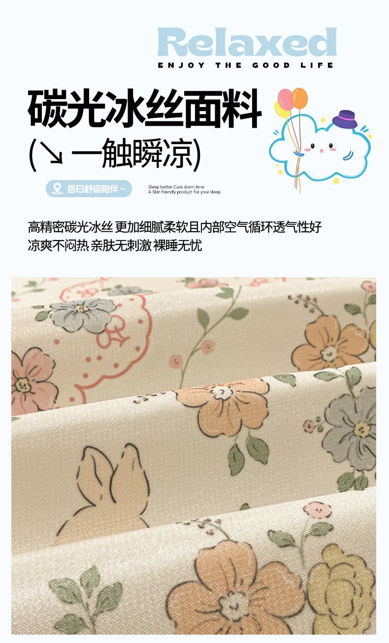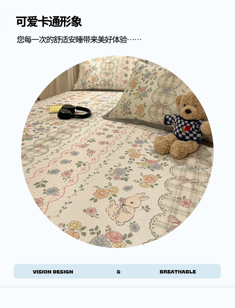 商品名称:慕澄家纺 2025新款小清新萌宠系列碳光冰丝凉席 花丛兔