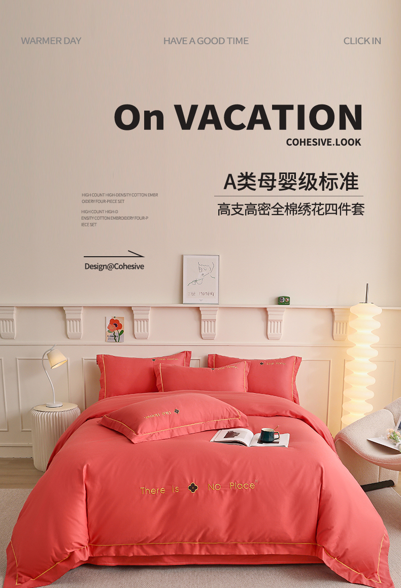 当前位置: 91家纺网 > 商品网购 > 床品套件 > 四件套 > 全棉普通四件套 > 宇彬家纺 2025直播热新款13374全棉母婴级压线一字绣宽边被套纯色刺绣四件套贡缎新疆长绒字母轻奢 暖系列-宝石红