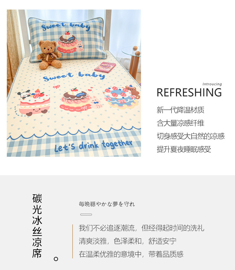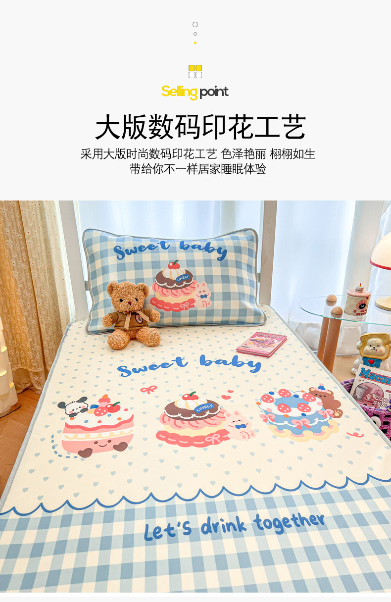 商品名称:柒月家居 2025新款大版冰丝床笠(学生床) 床笠-蛋糕派对