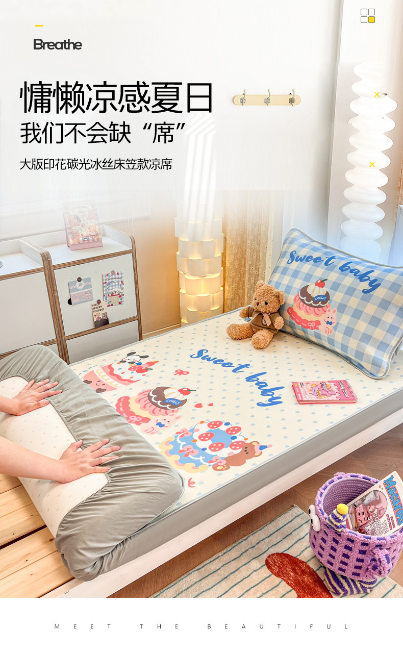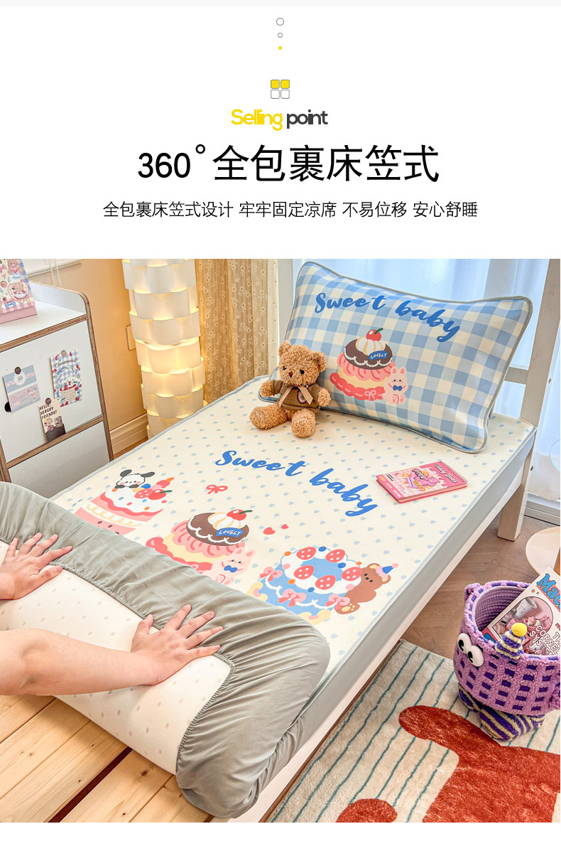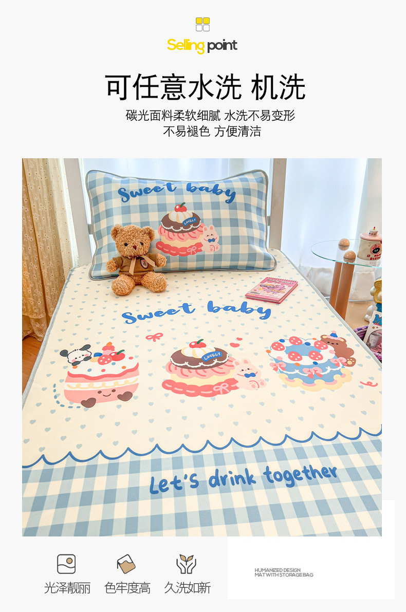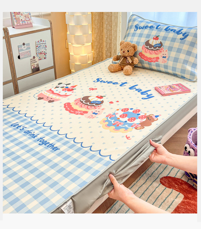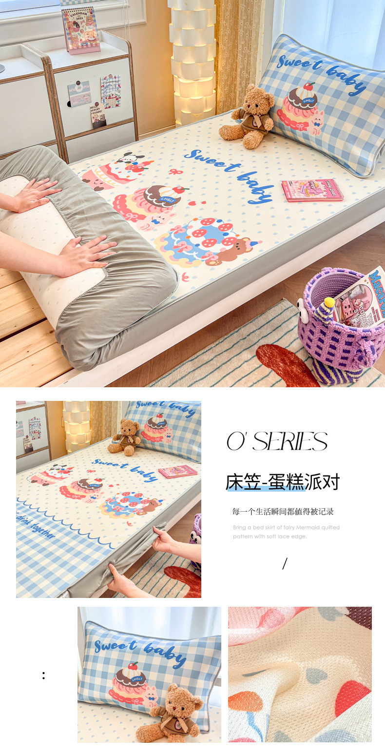 柒月家居 2025新款大版冰丝床笠(学生床) 床笠-蛋糕派对