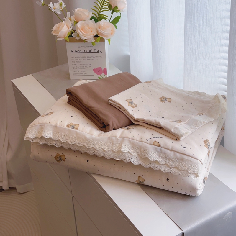 当前位置: 91家纺网 > 商品网购 > 床品套件 > 四件套 > 夏被四件套 > 黛馨 2025春夏新款全棉纯棉A类双层纱工艺款夏被夏凉被空调被四件套蕾丝款 点点熊