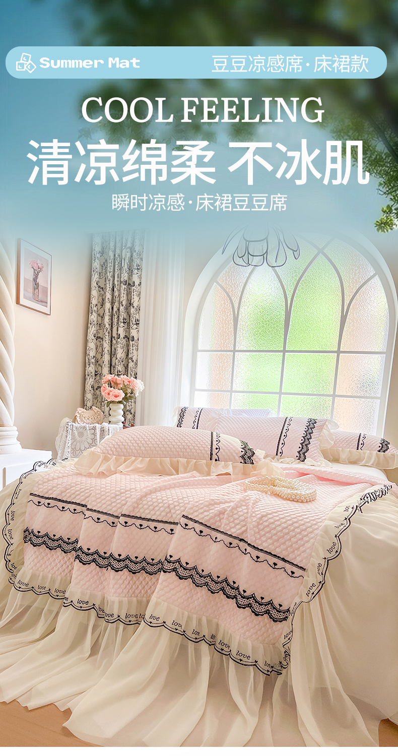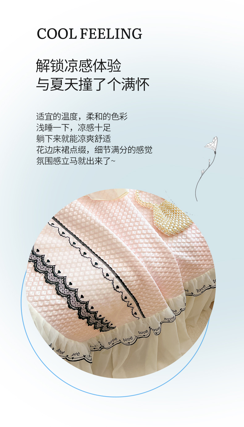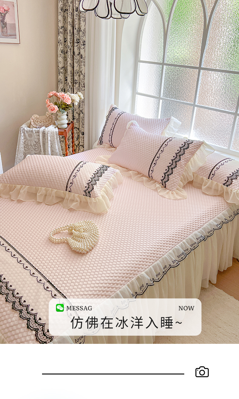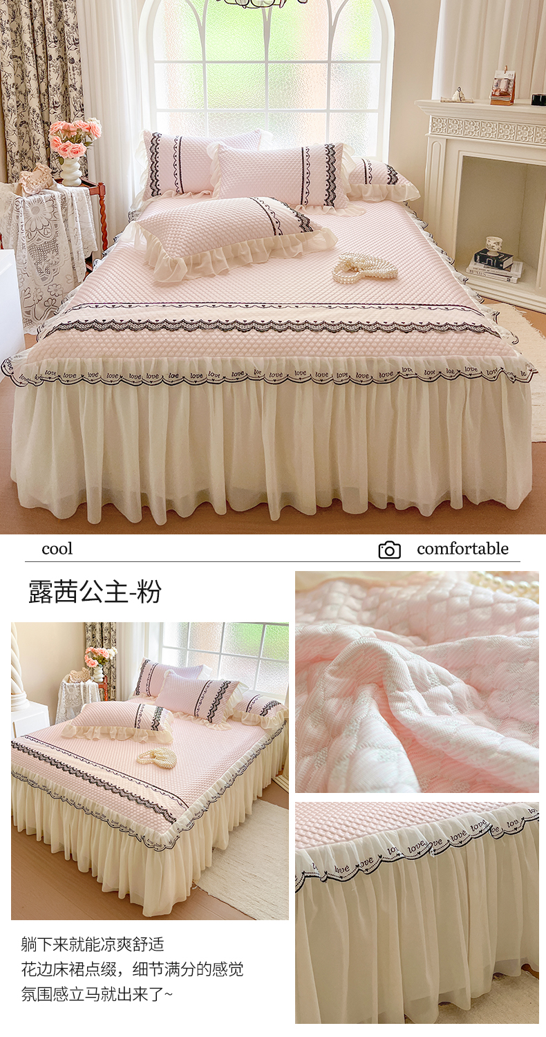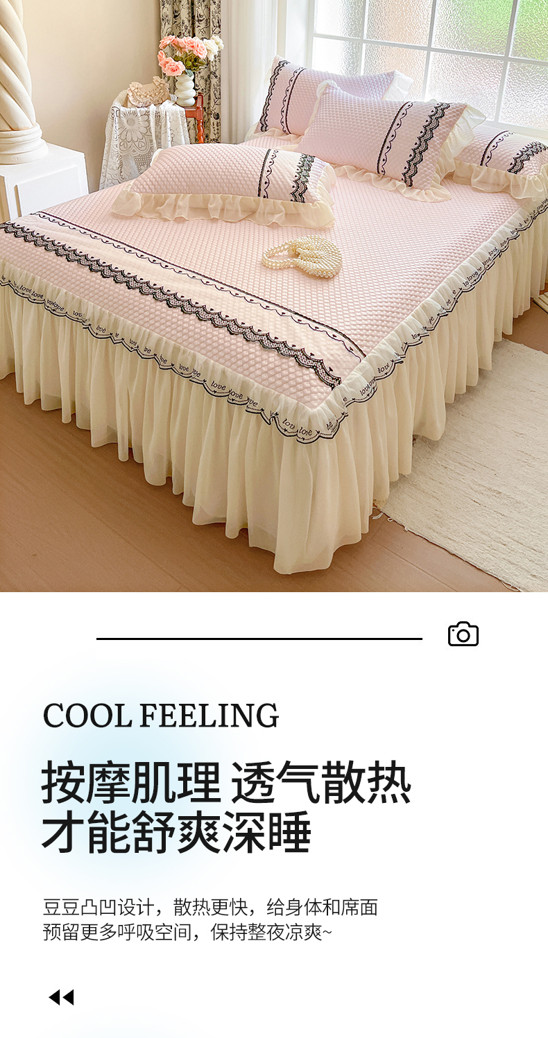 商品名称:网红馆(ck家纺) 2025新款凉豆豆床裙款凉席三件套-露茜公主 露茜公主-粉