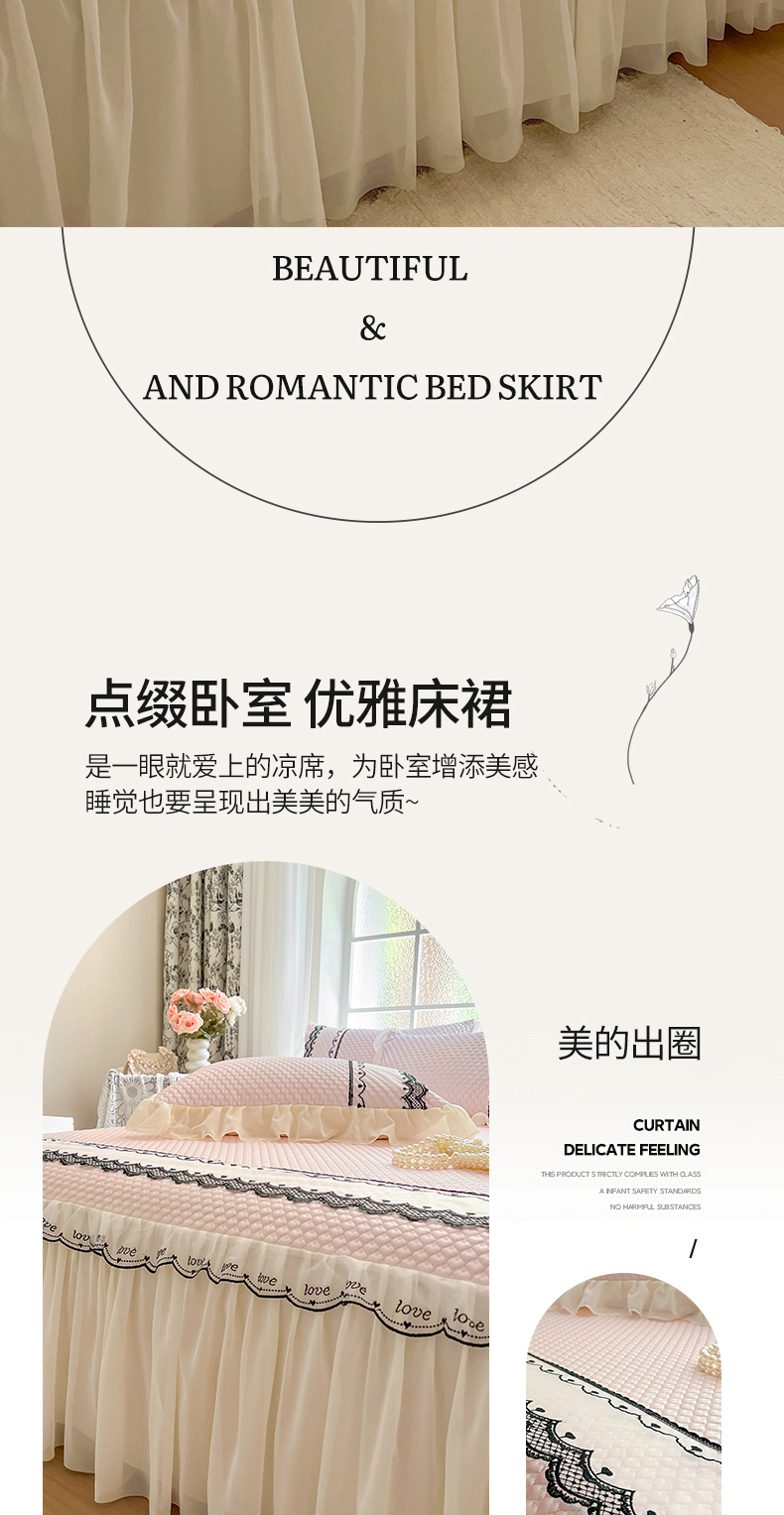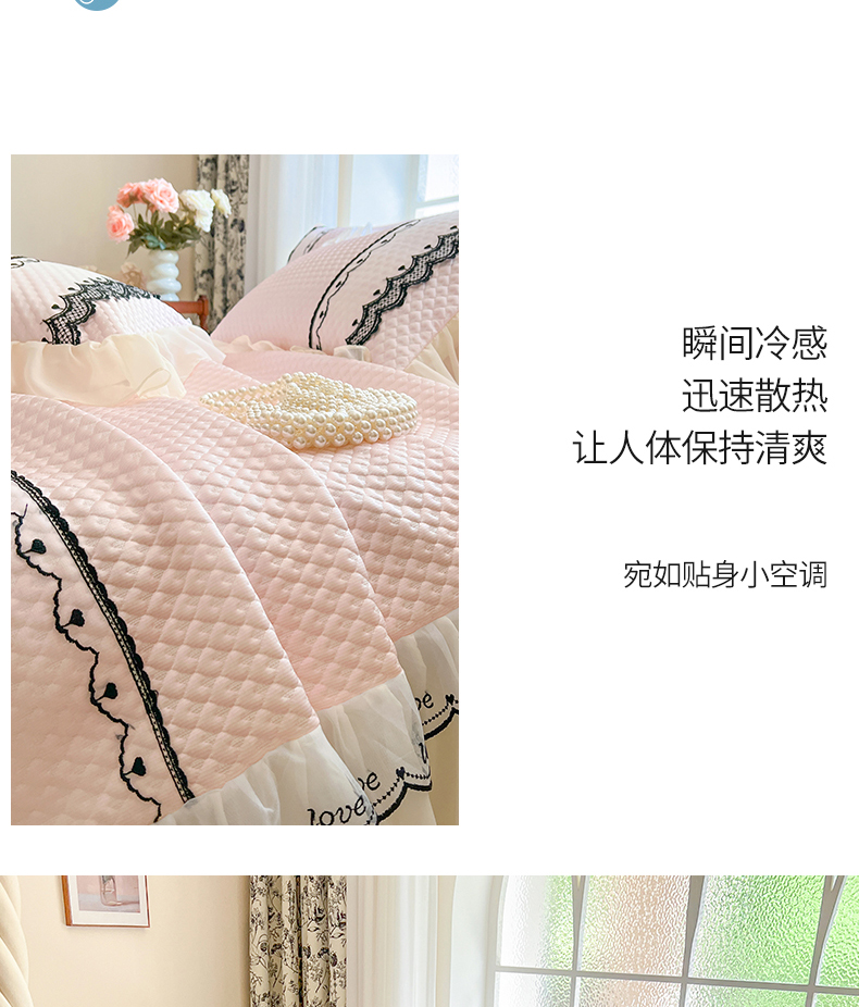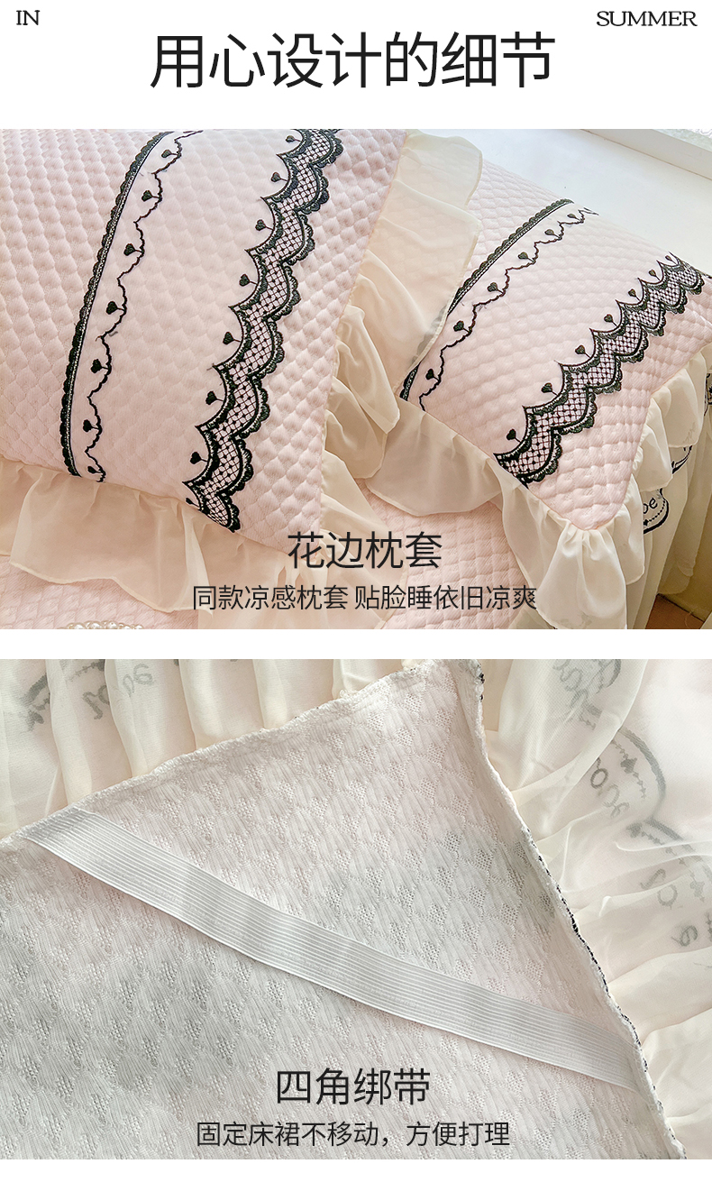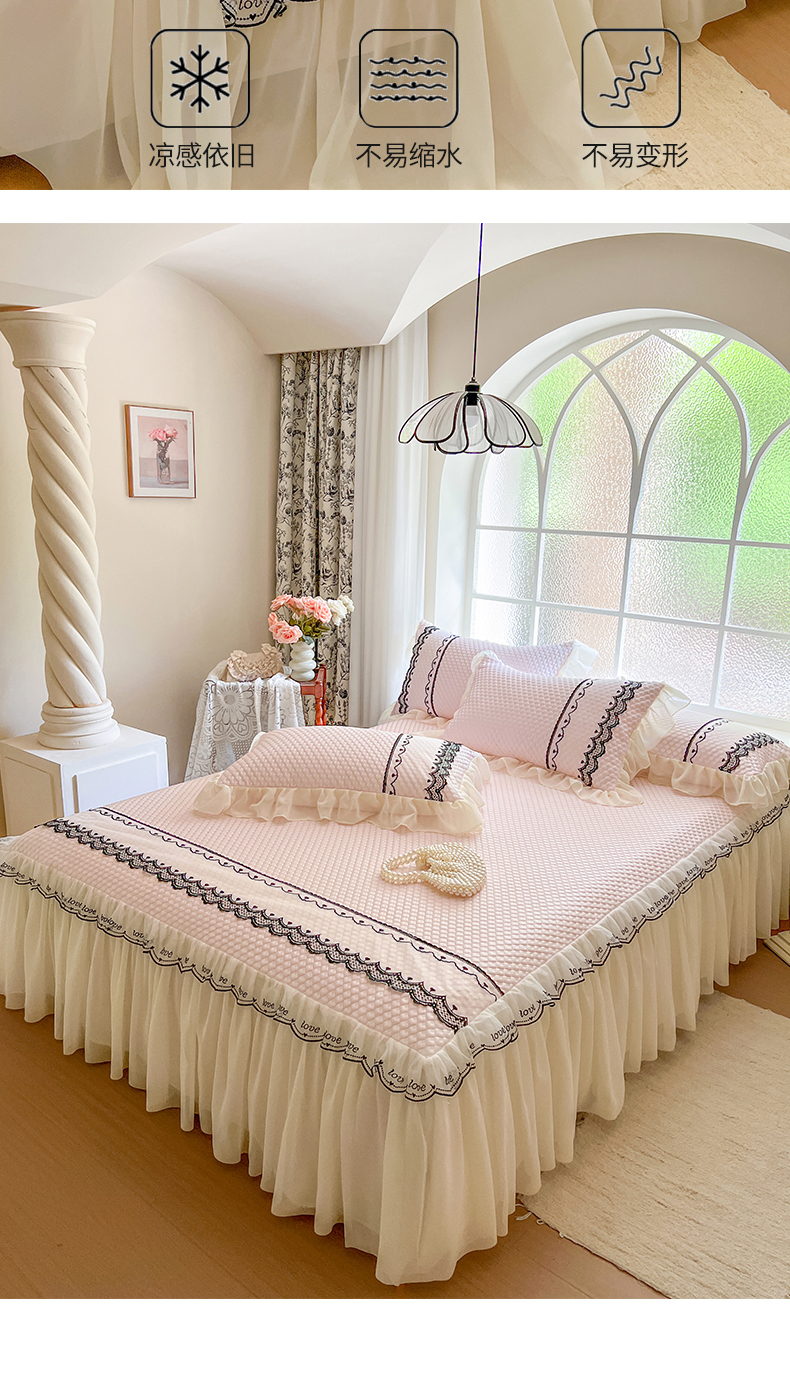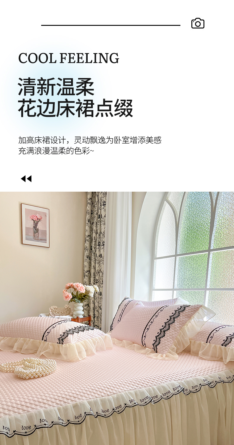 商品名称:网红馆(ck家纺) 2025新款凉豆豆床裙款凉席三件套-露茜公主 露茜公主-粉
