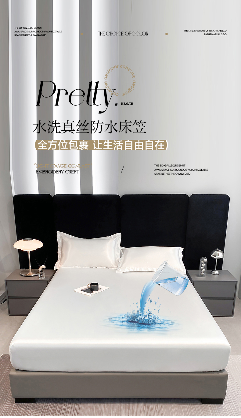 • 91家纺网 家纺一手货源 找家纺 合纵跨境工厂 2025新款水洗真丝床笠隔尿床单床垫保护套跨境外贸JIT一件代发TEMU亚马逊希音包过核价TPU防水床笠 \" 珍珠白