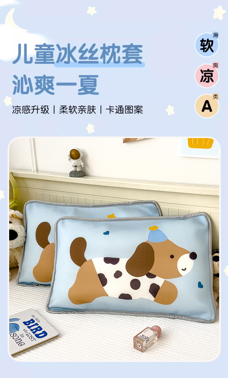 丽美人家纺 2025新款儿童冰丝枕套 斑点狗