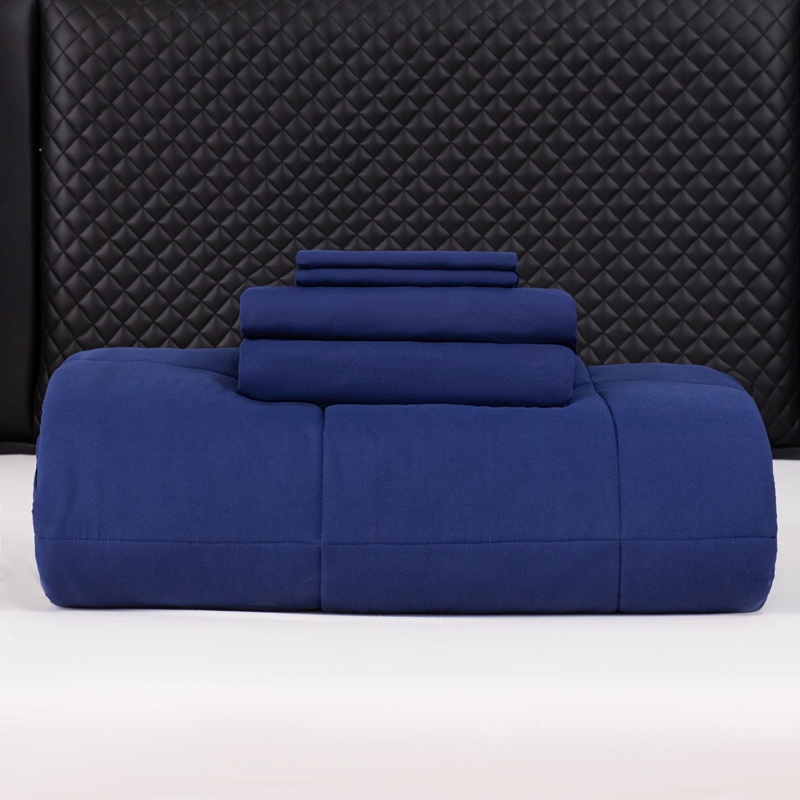 商品名称:合纵跨境工厂 2025新款爆款水洗棉枕套被芯*床笠*床单*枕套跨境外贸JIT一件代发TEMU亚马逊希音包过核价被子四五件套 藏青色