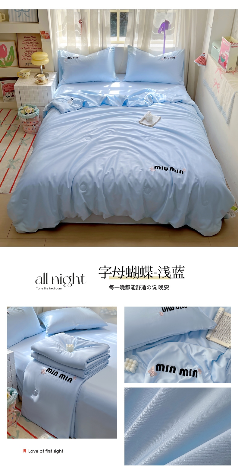• 91家纺网 家纺一手货源 找家纺 花伞家居 2025新款刺绣高级感水洗真丝夏被四件套含买家秀 字母蝴蝶-兰