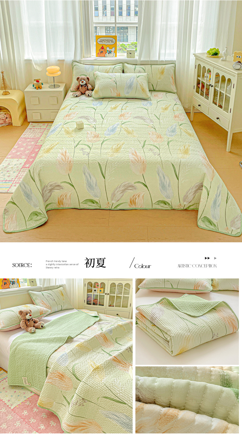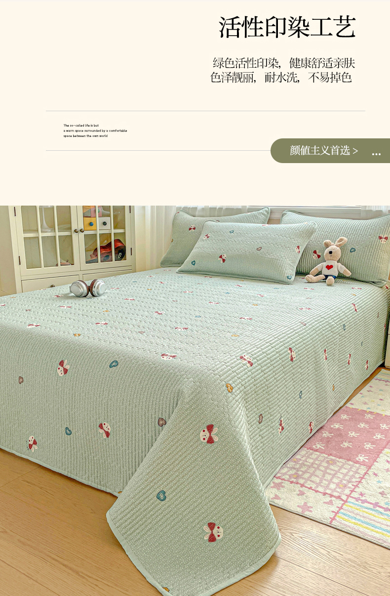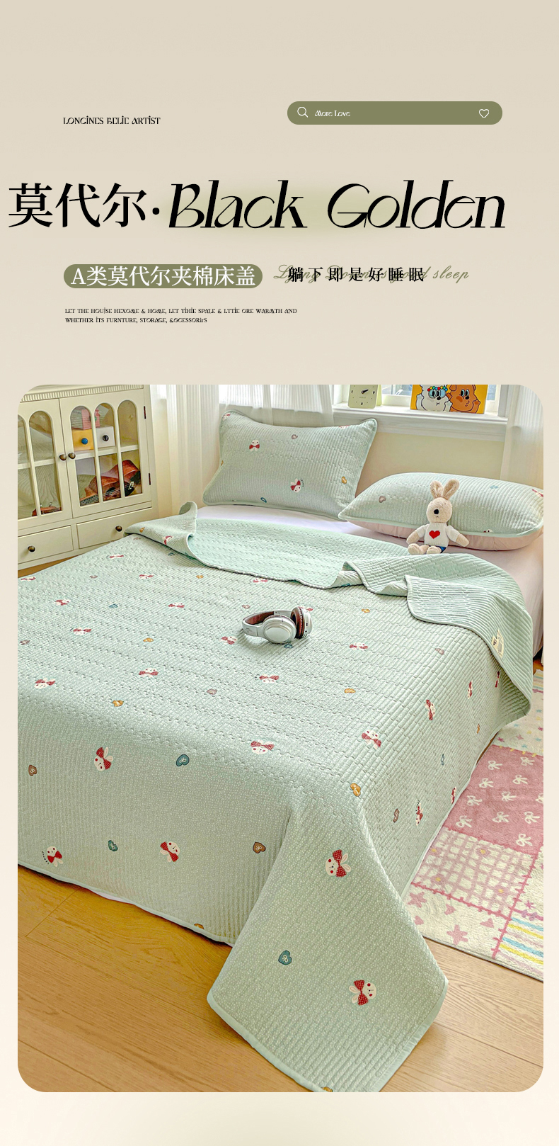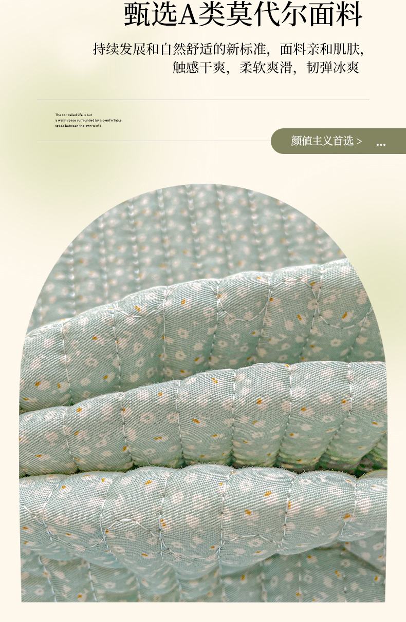 恒尚居 2025新款莫代尔天丝夏季床盖印花夹棉床单三件套床褥垫-系列二 莫代尔-芬迪-绿