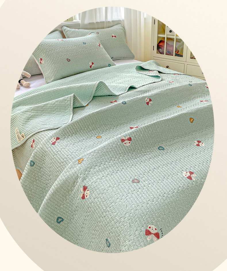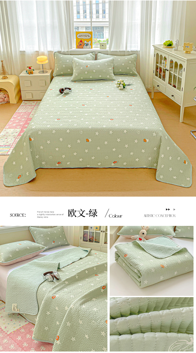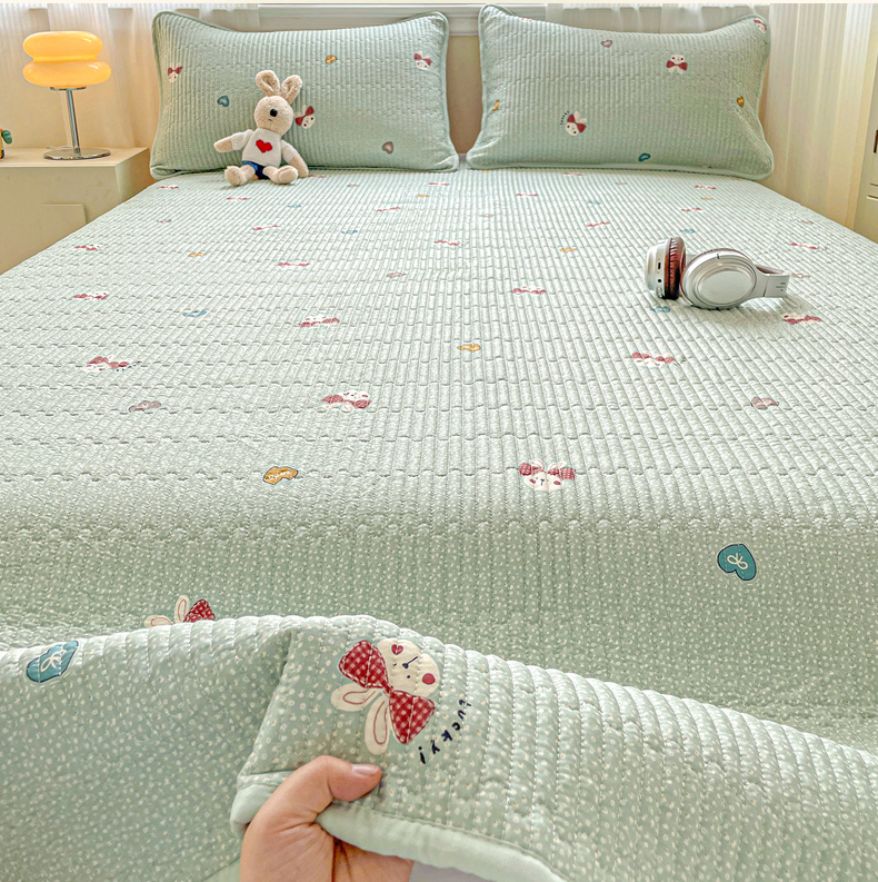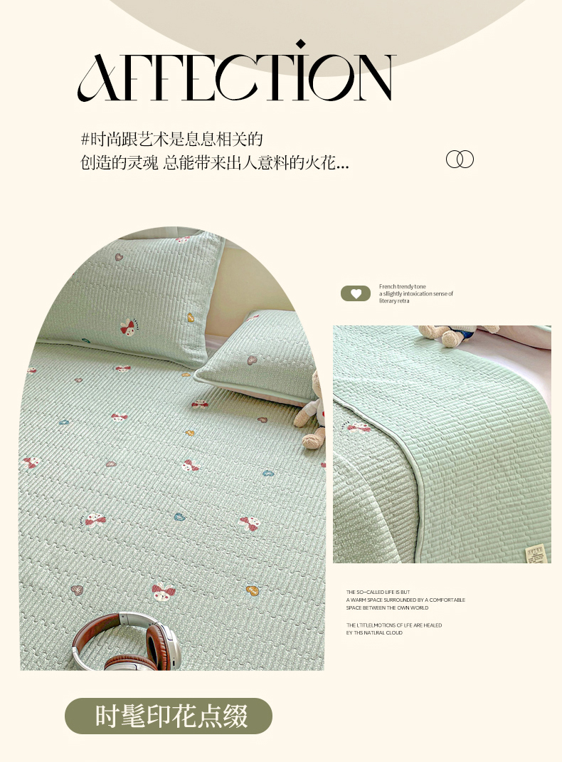 恒尚居 2025新款莫代尔天丝夏季床盖印花夹棉床单三件套床褥垫-系列二 莫代尔-芬迪-绿