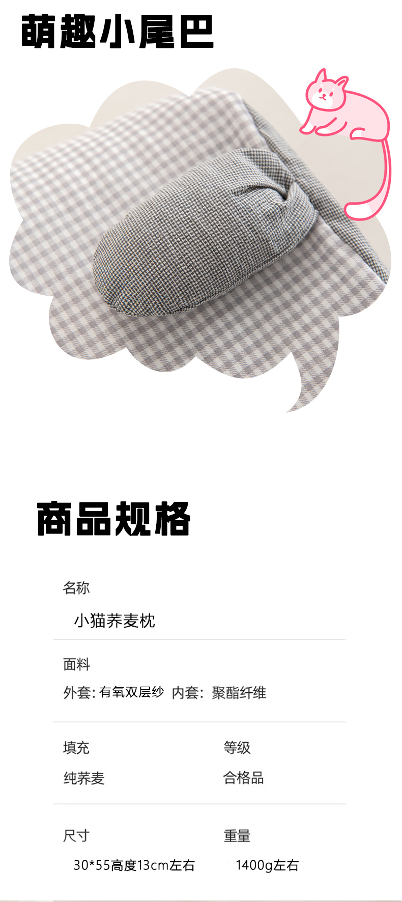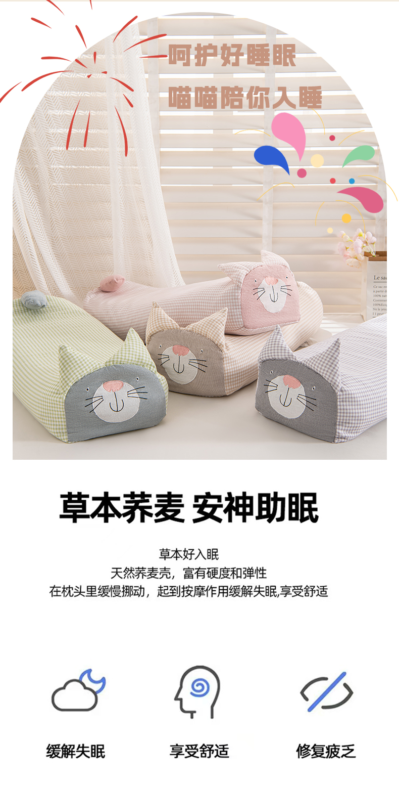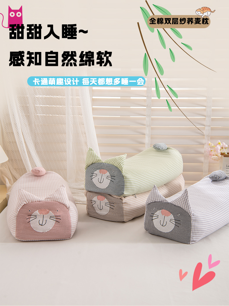 商品名称:(总)芯洲 2025新款A类有氧双层纱小猫直播爆款荞麦枕可爱卡通枕头枕芯