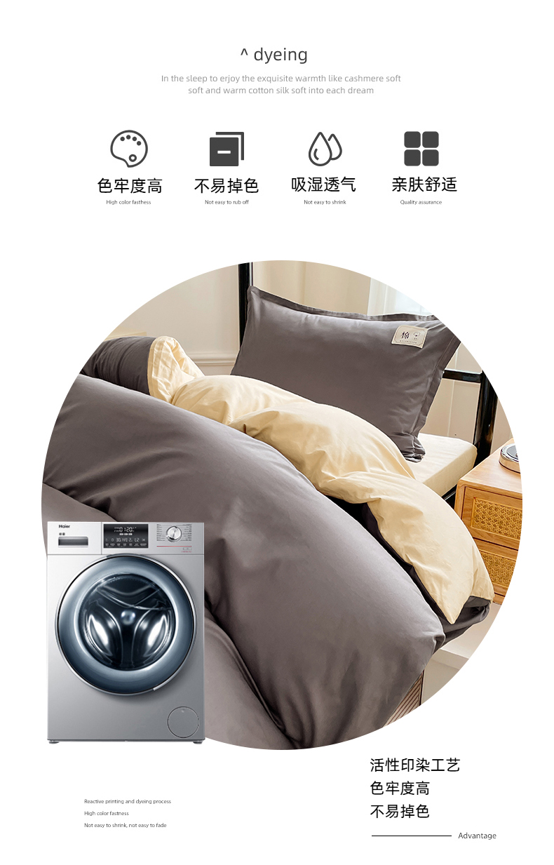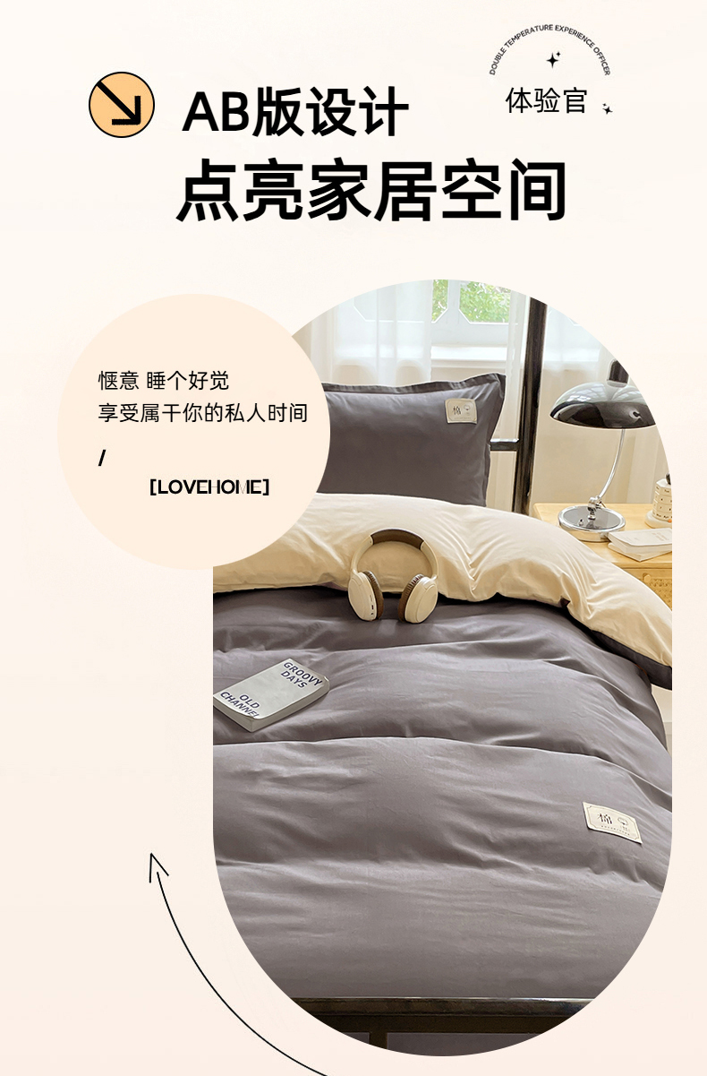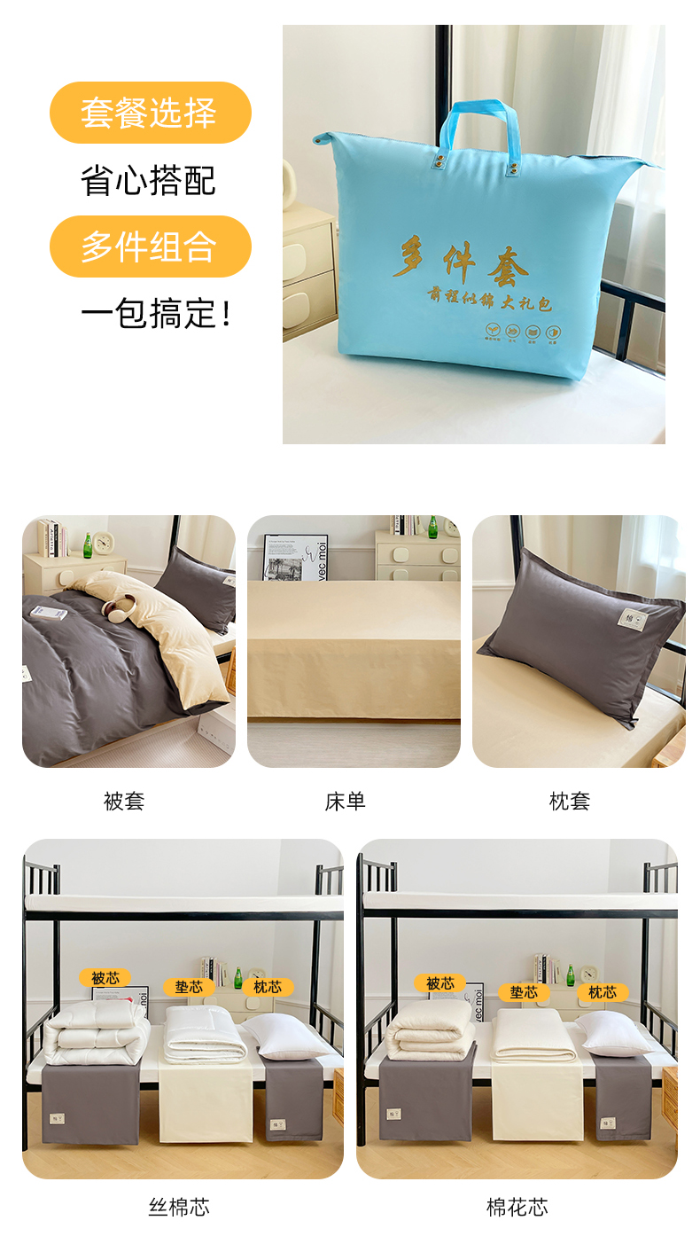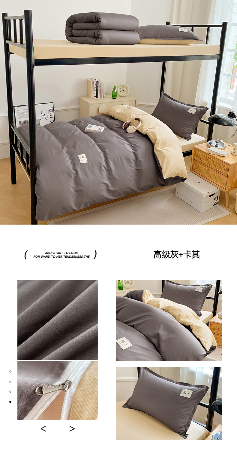 • 91家纺网 家纺一手货源 找家纺 锦润家纺2025新款13372全棉纯色双拼学生宿舍三件套六件套