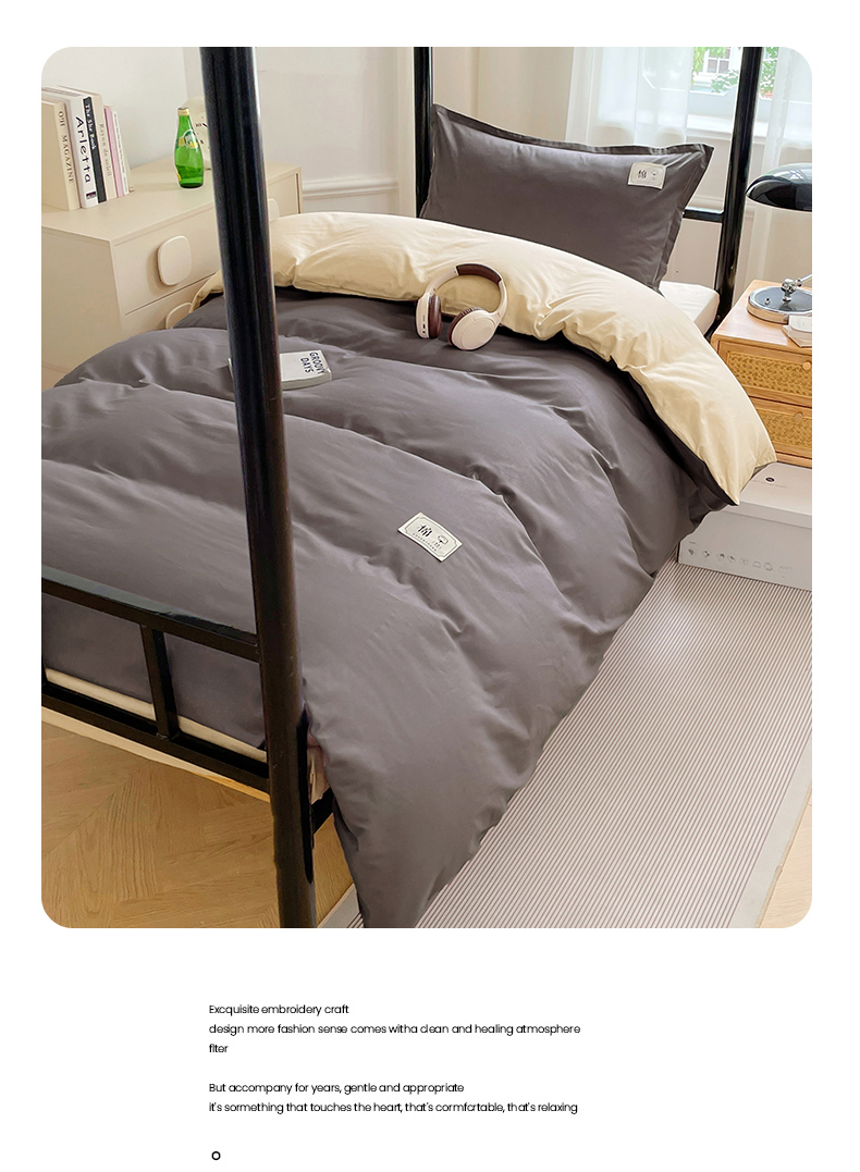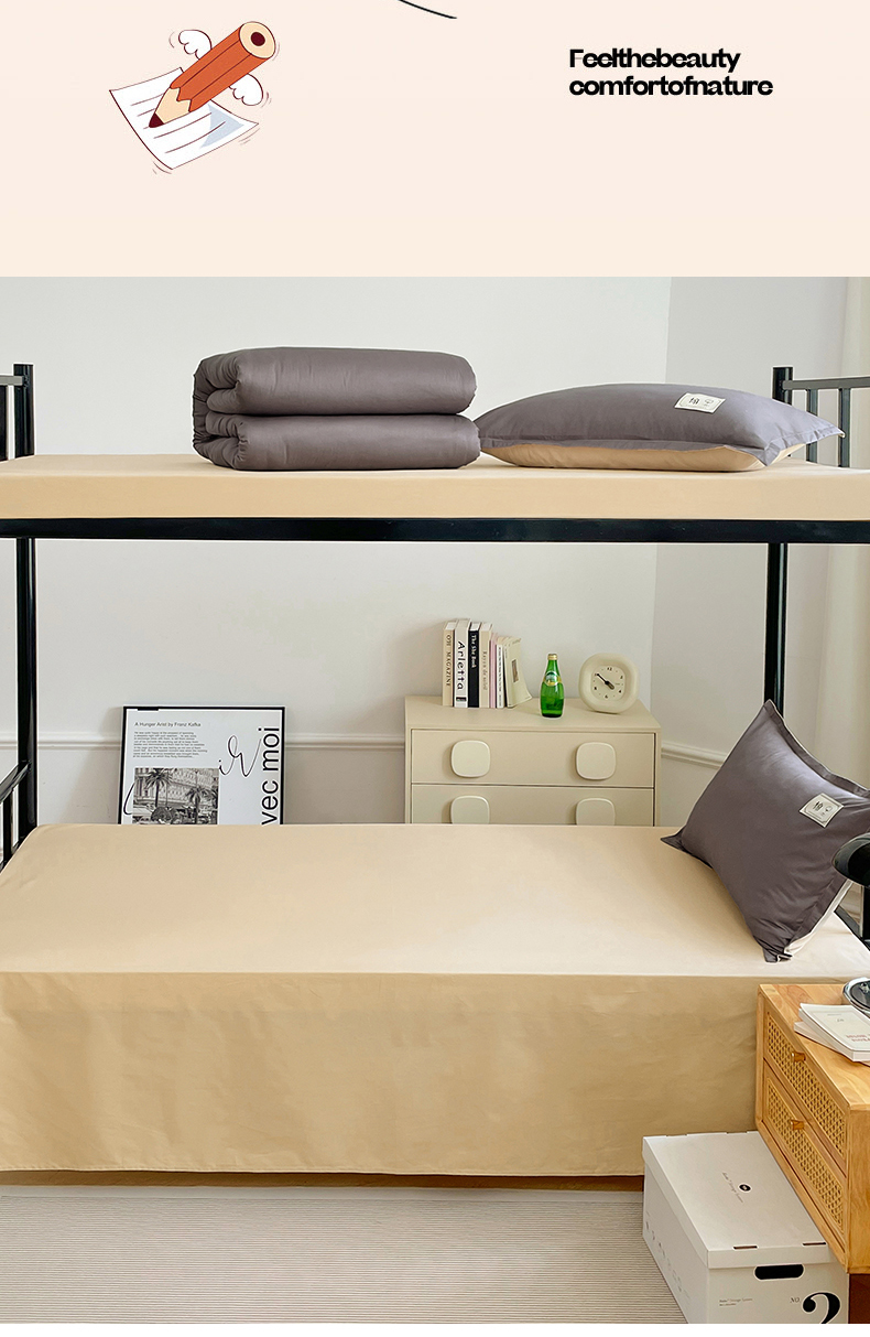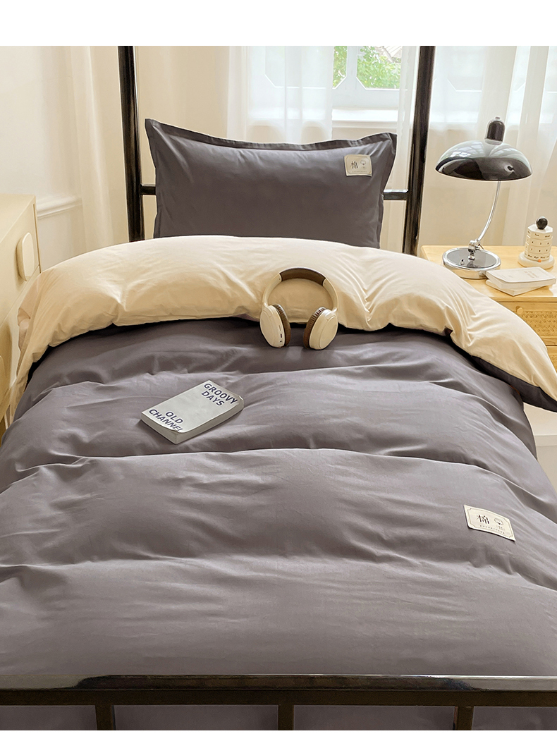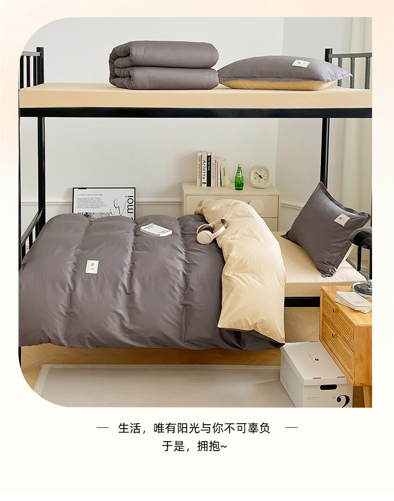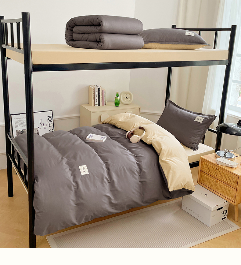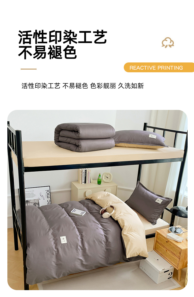 锦润家纺2025新款13372全棉纯色双拼学生宿舍三件套六件套