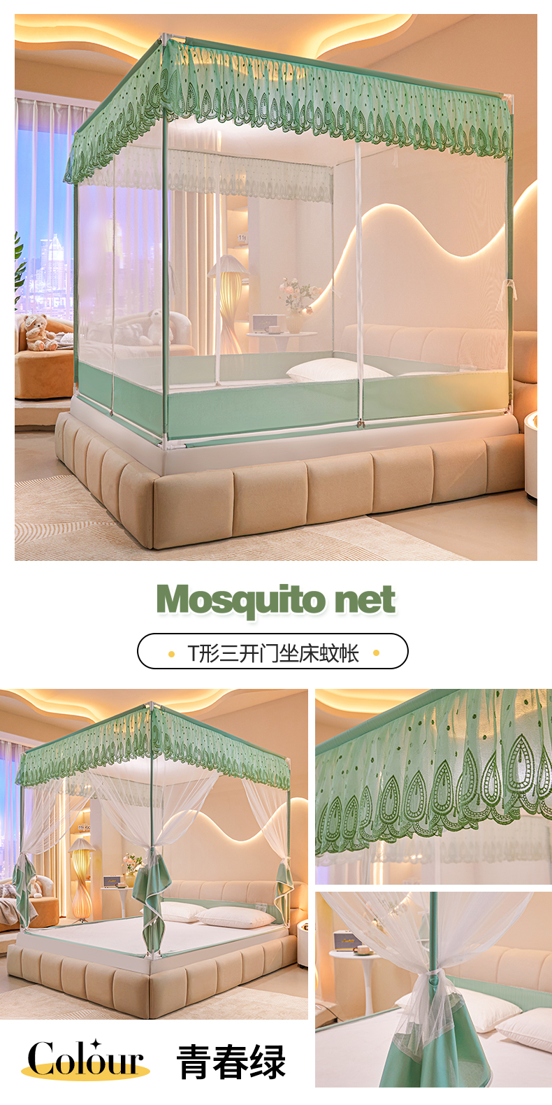 (总)博诺蚊帐 2025新款坐床全底蚊帐,田园绿,星空灰,樱花粉