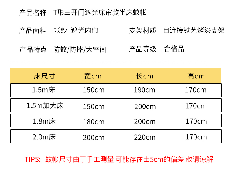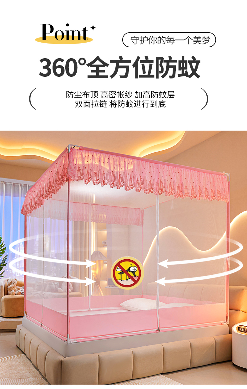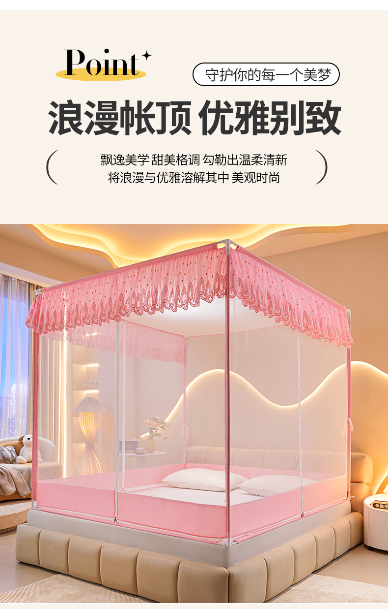 商品名称:博诺蚊帐 2025新款坐床全底蚊帐 樱花粉