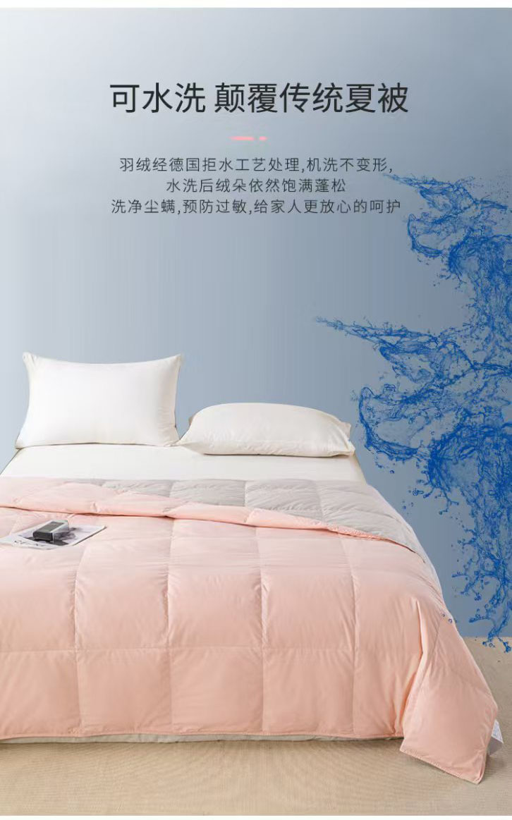 圣梦莱羽绒家纺 2025春夏新款可水洗羽绒夏被 90拒水白鸭绒被子被芯羽绒(假一赔十万元) 浅绿+天云灰