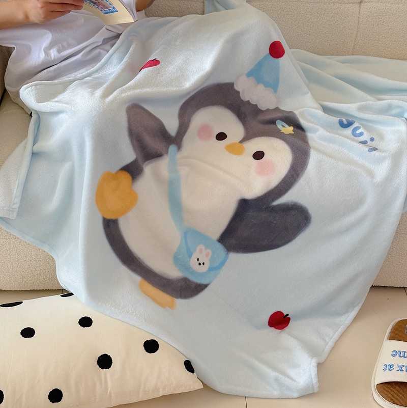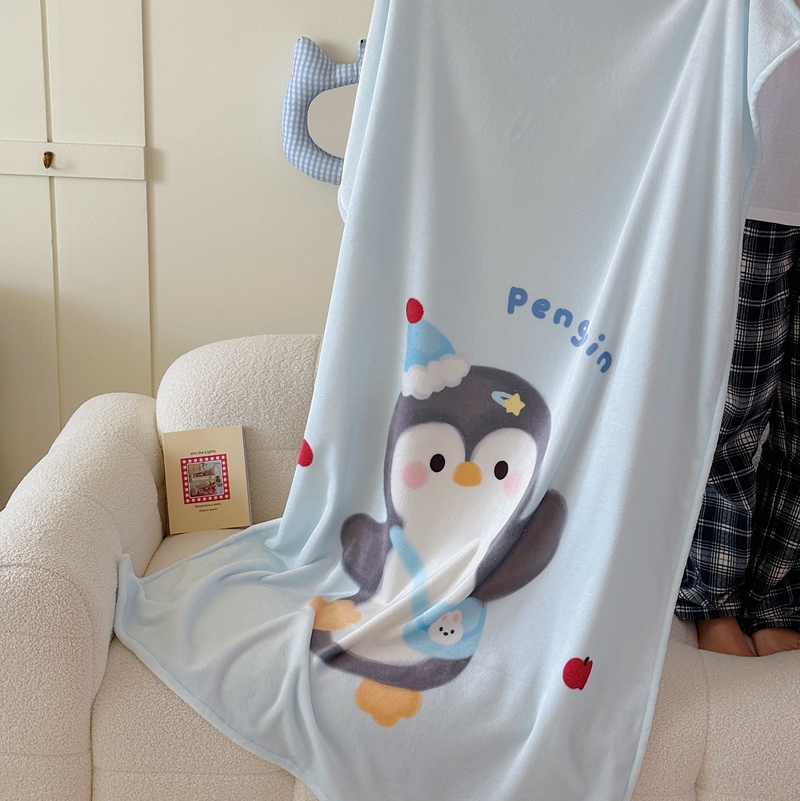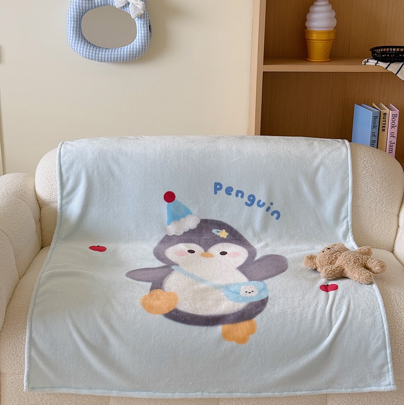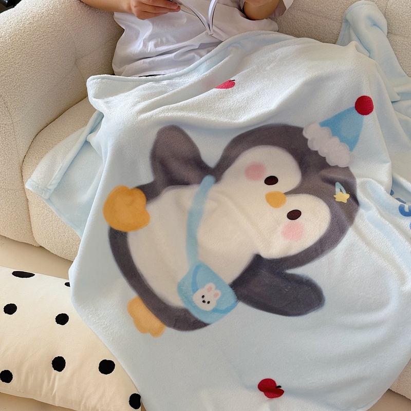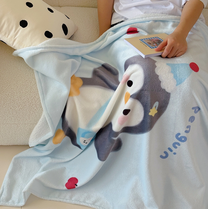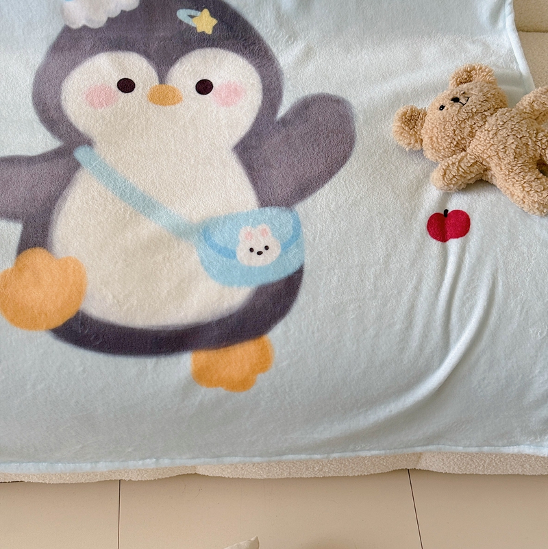 美乐迪2025四季款双面牛奶绒毛毯空调毯 企鹅