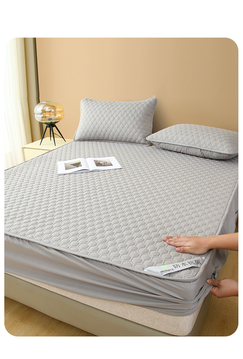 (总)云玲时尚 2025新款夹棉抗菌防水床笠,净白,浅灰,本色,灰蓝,深灰,雾蓝,虾粉,杏色