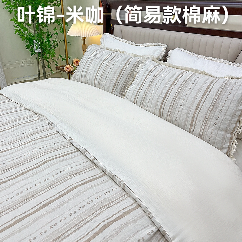商品名称:鲁爱家纺供货2025新款简易款棉麻四件套(纯跑量) 叶锦-米咖