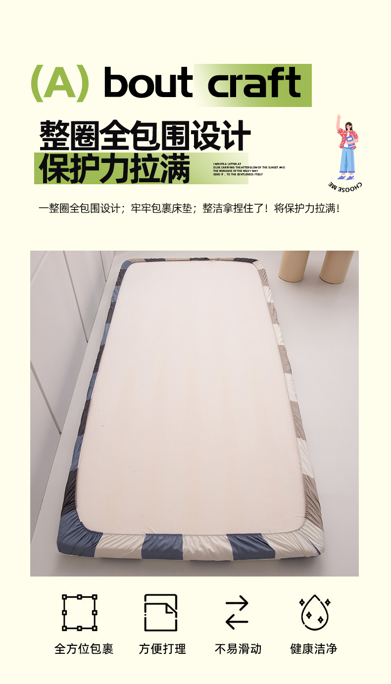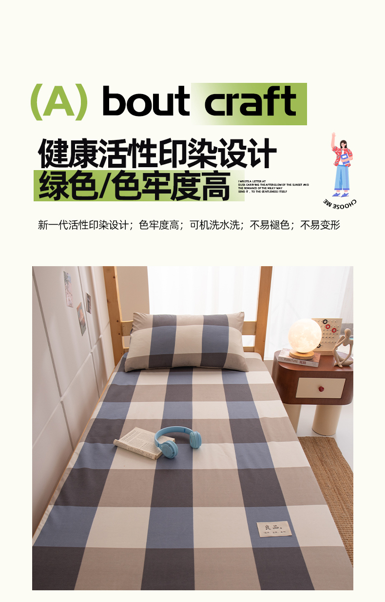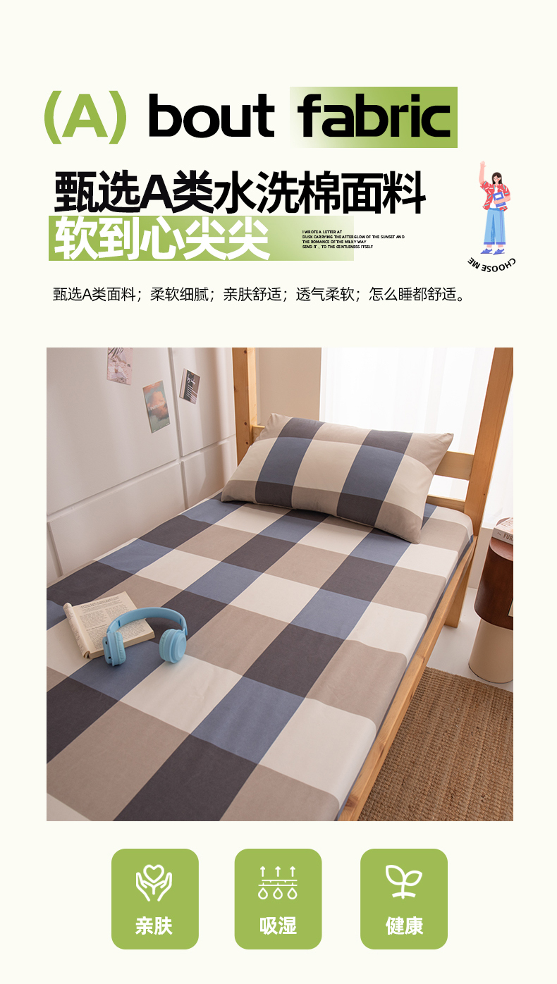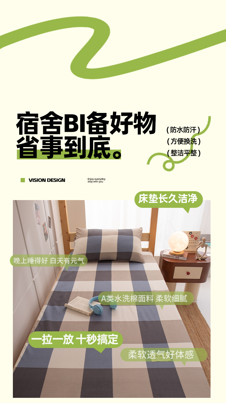 商品名称:暖季家纺2025新款无印风学生防水床笠 防水-蓝灰格