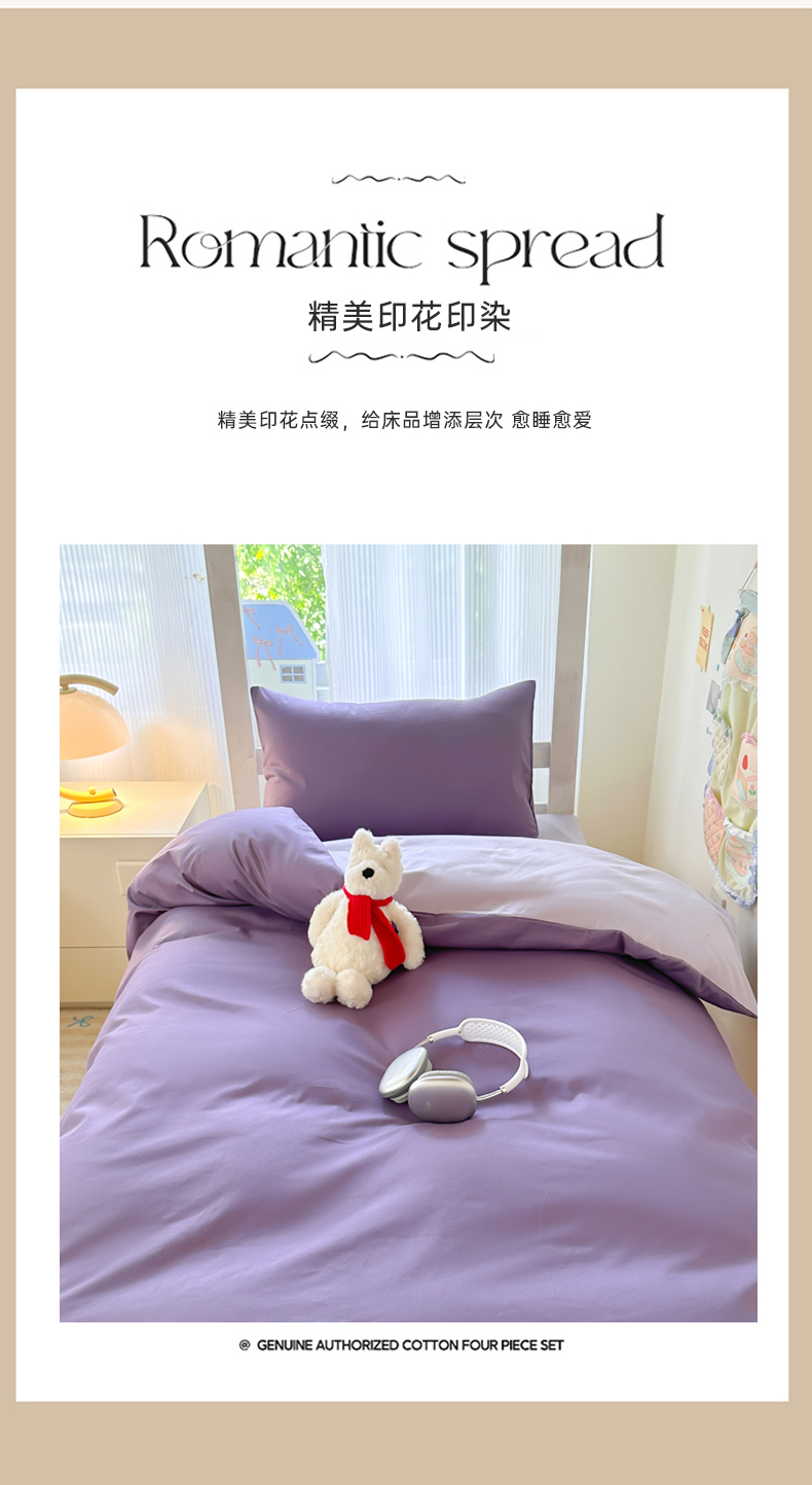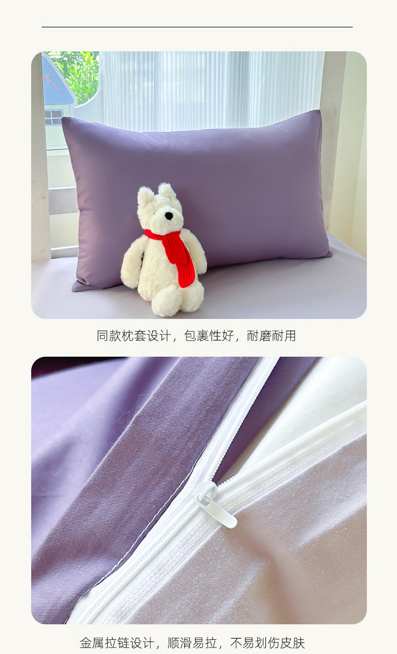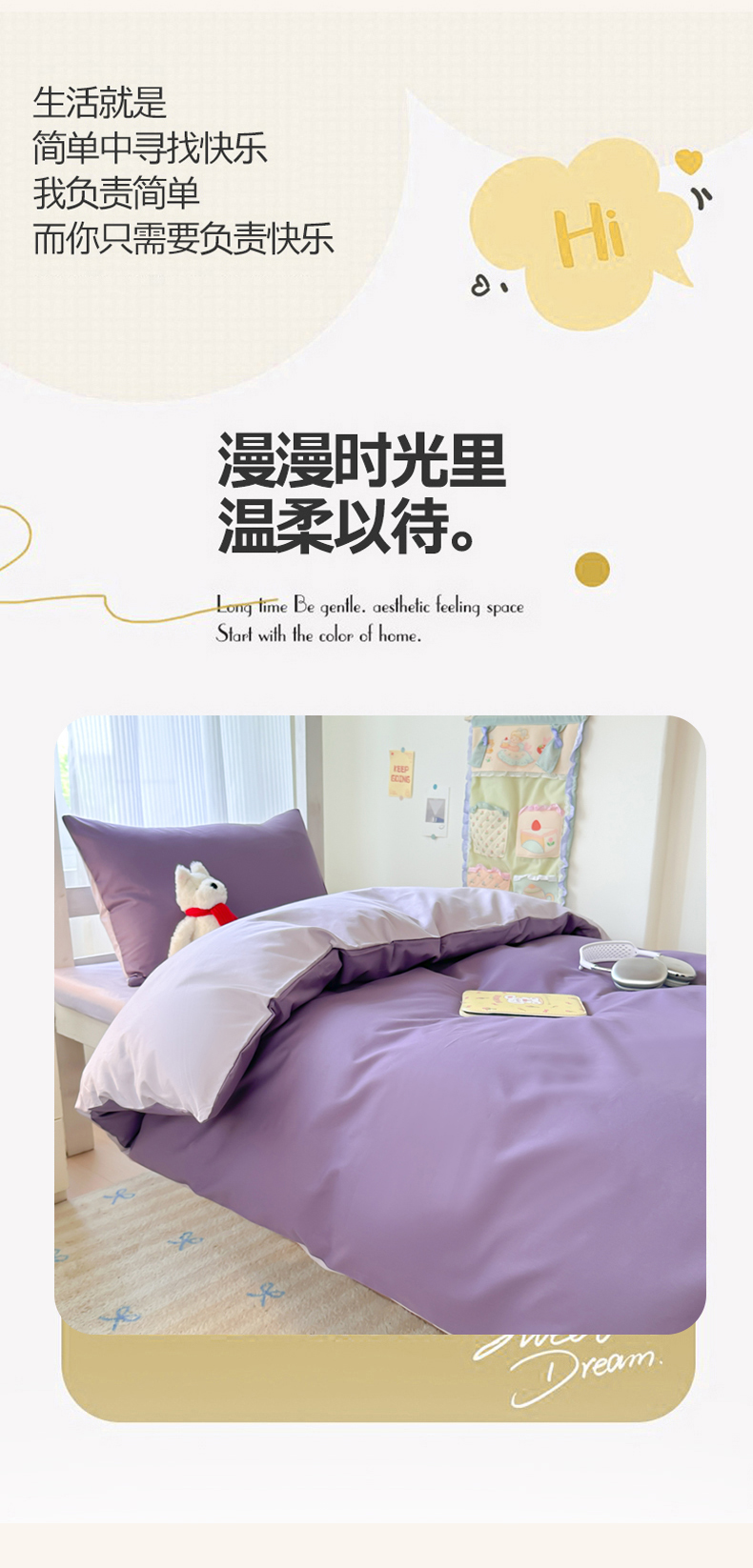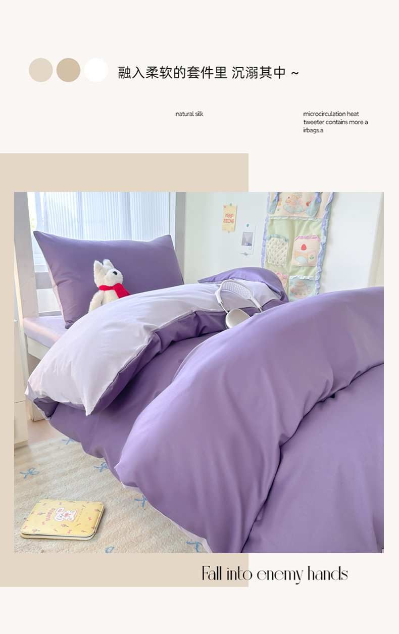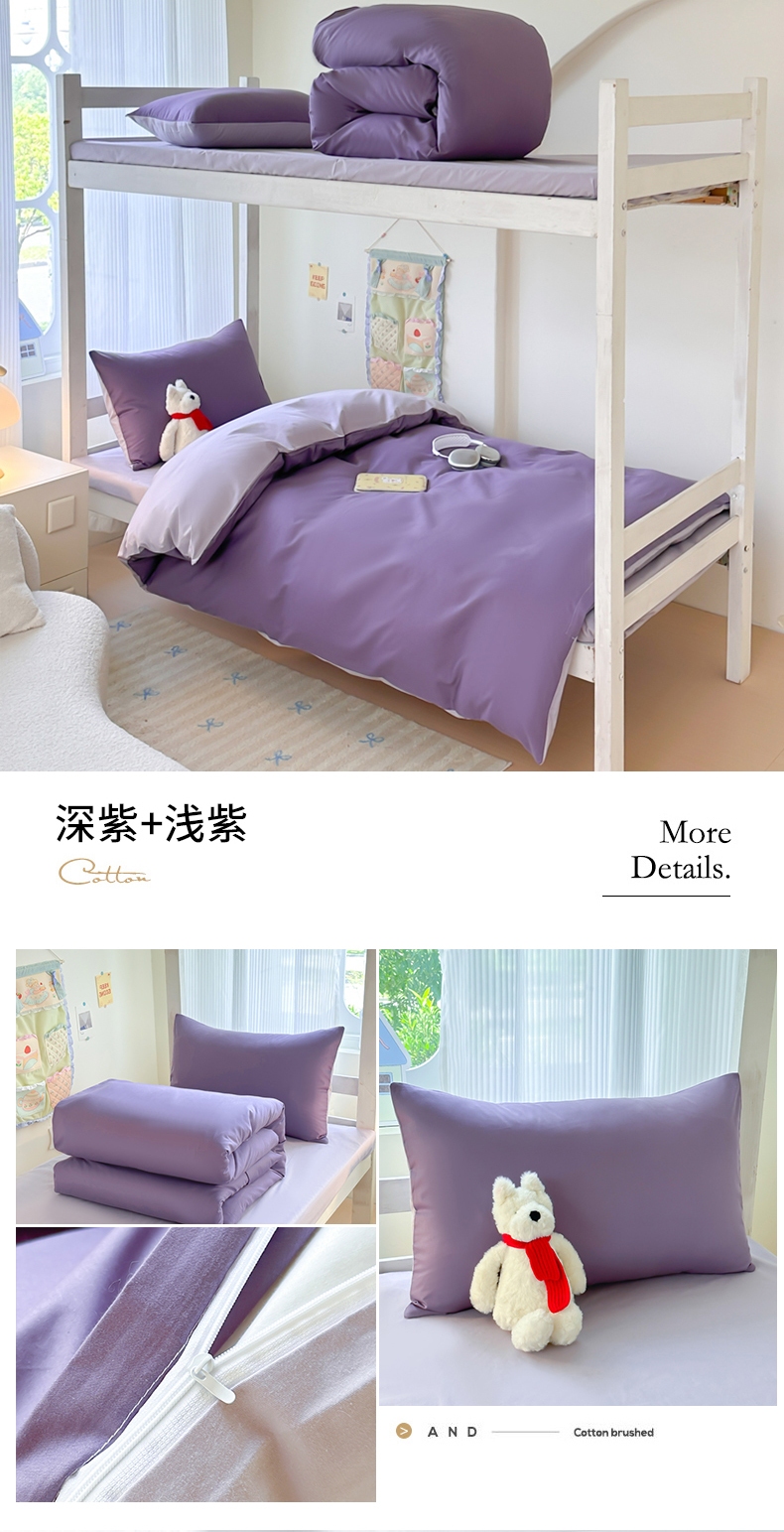 商品名称:简冠家纺 2025新款13372全棉纯色学生三件套 深紫+浅紫