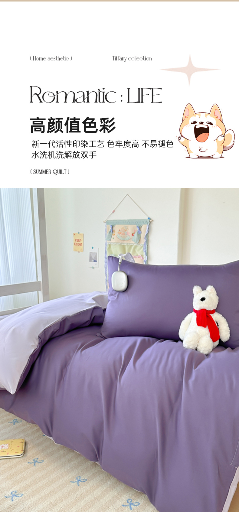 简冠家纺 2025新款13372全棉纯色学生三件套 深紫+浅紫