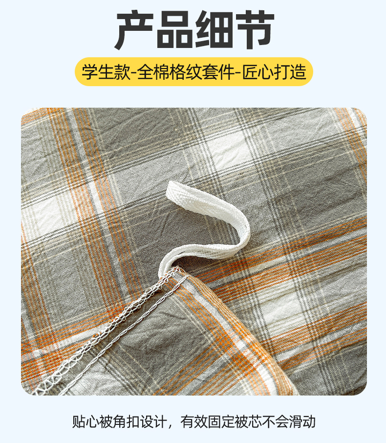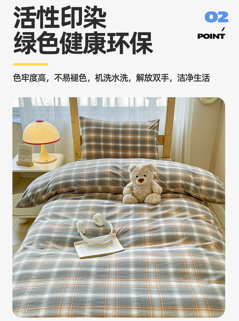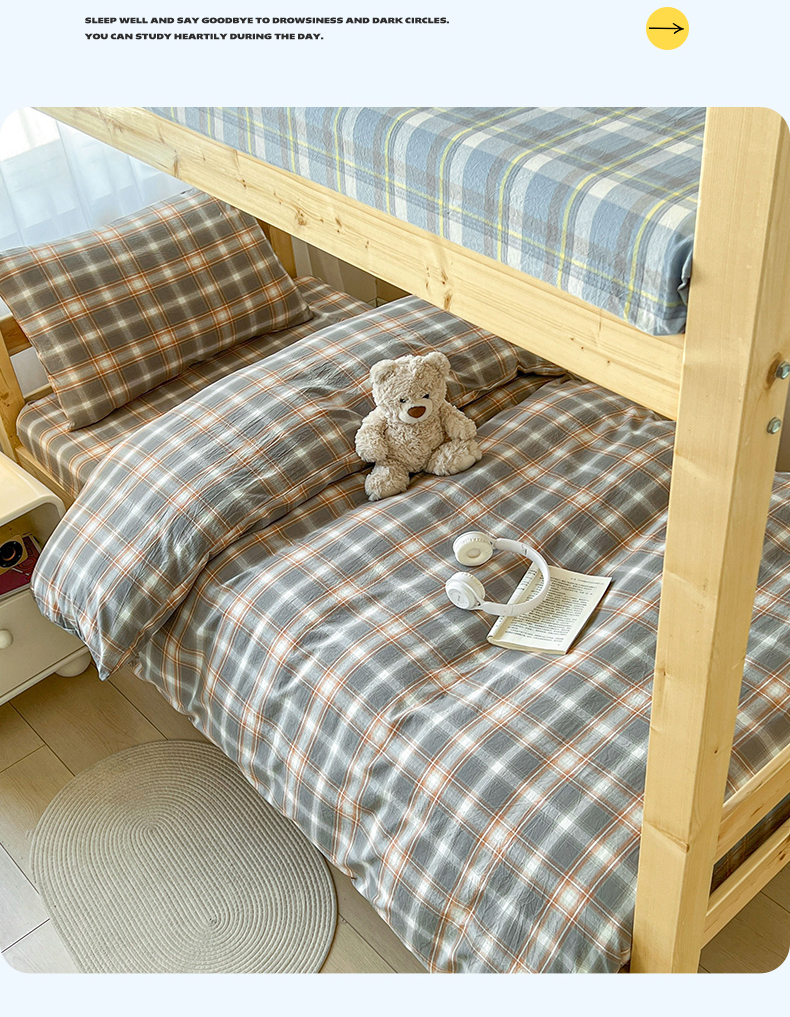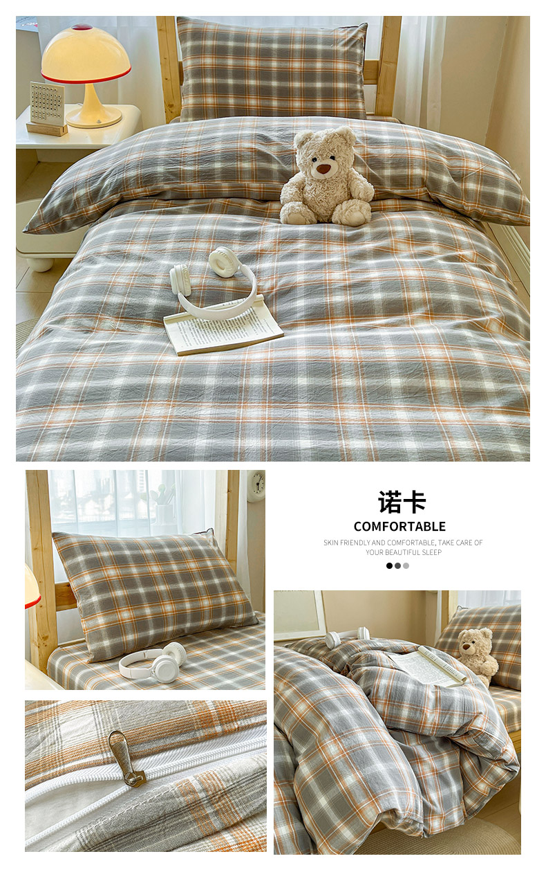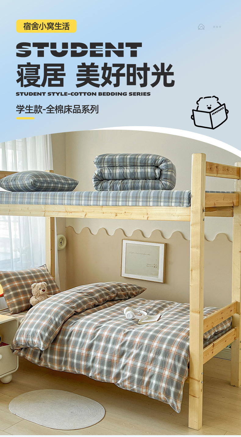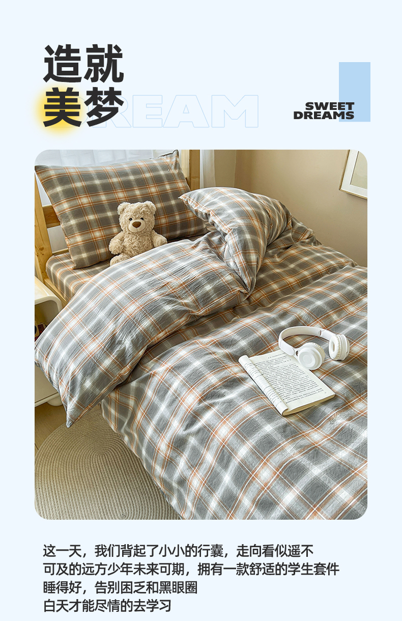 当前位置: 91家纺网 > 商品网购 > 床品套件 > 三件套 > 恒爱家纺 2025新款学生季全棉印花格子三件套 诺卡