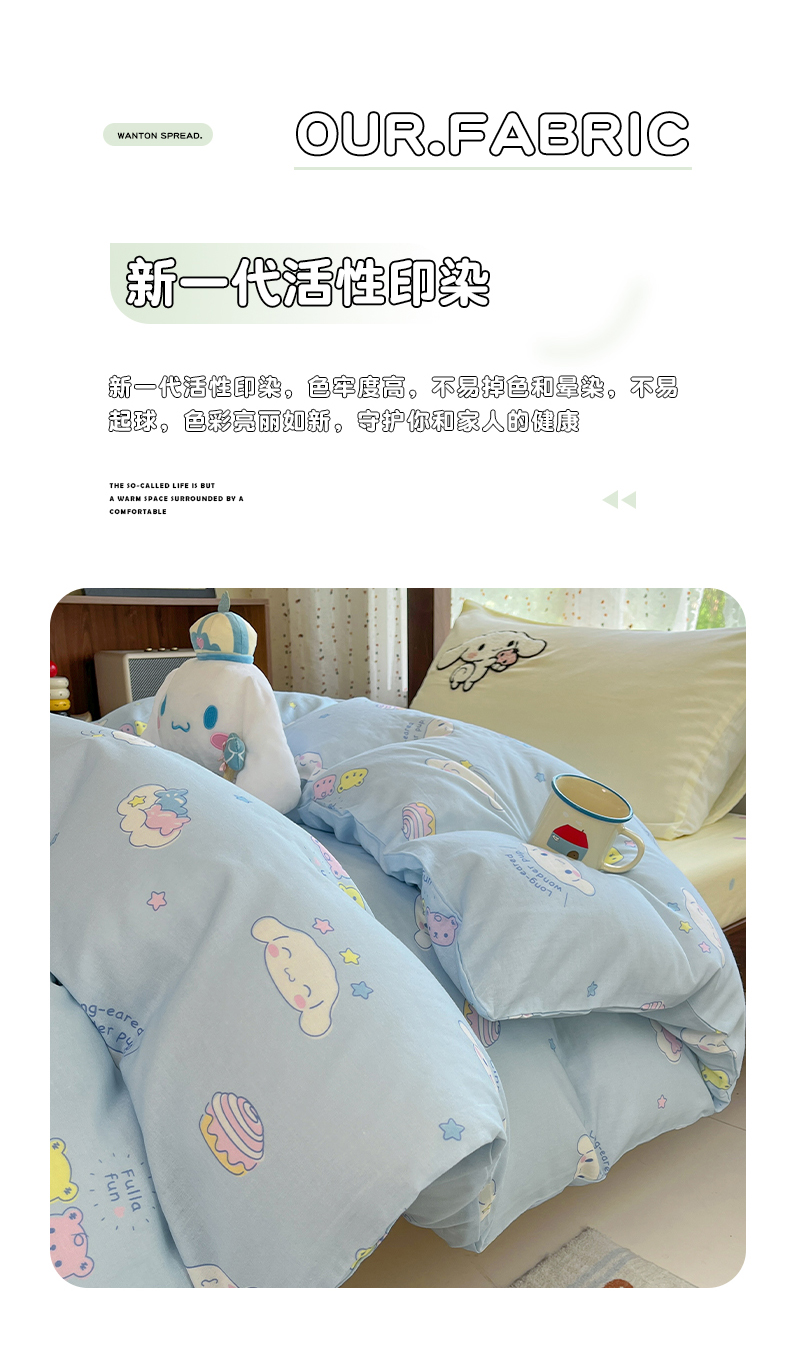 (总)蓝邻家纺 2025年新款全棉纯棉双层纱三丽鸥刺绣学生宿舍三件套四件套系列