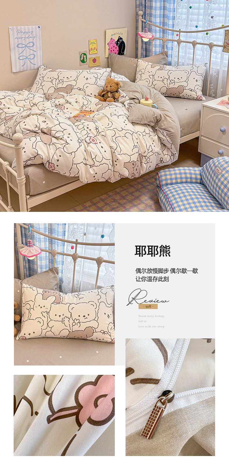 当前位置: 91家纺网 > 商品网购 > 床品套件 > 四件套 > 全棉普通四件套 > 呗旺鹿 2025新款40s全棉纯棉卡通印花学生系列四件套 耶耶熊