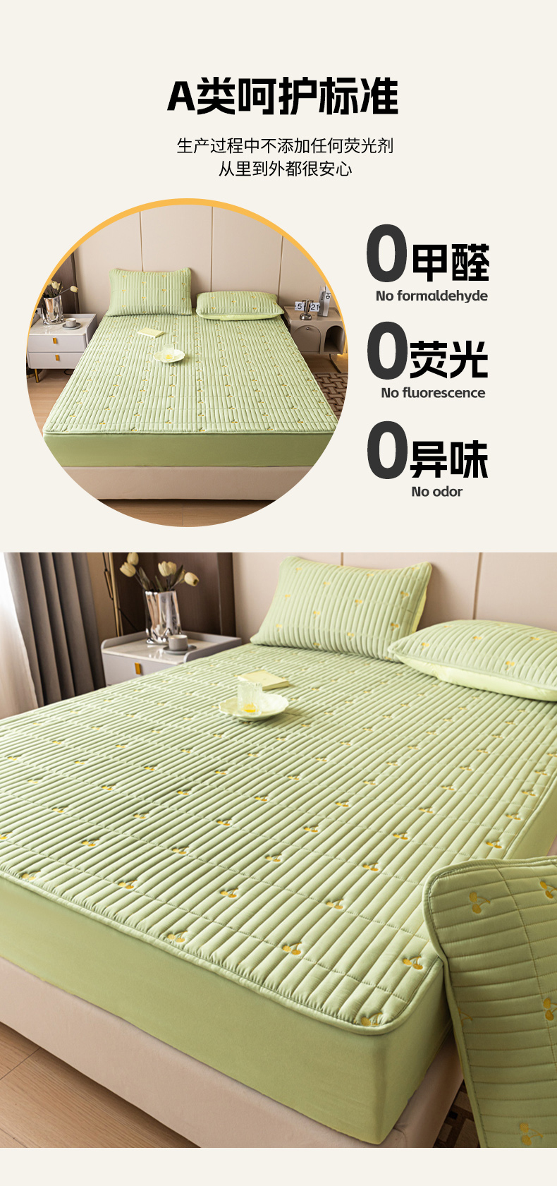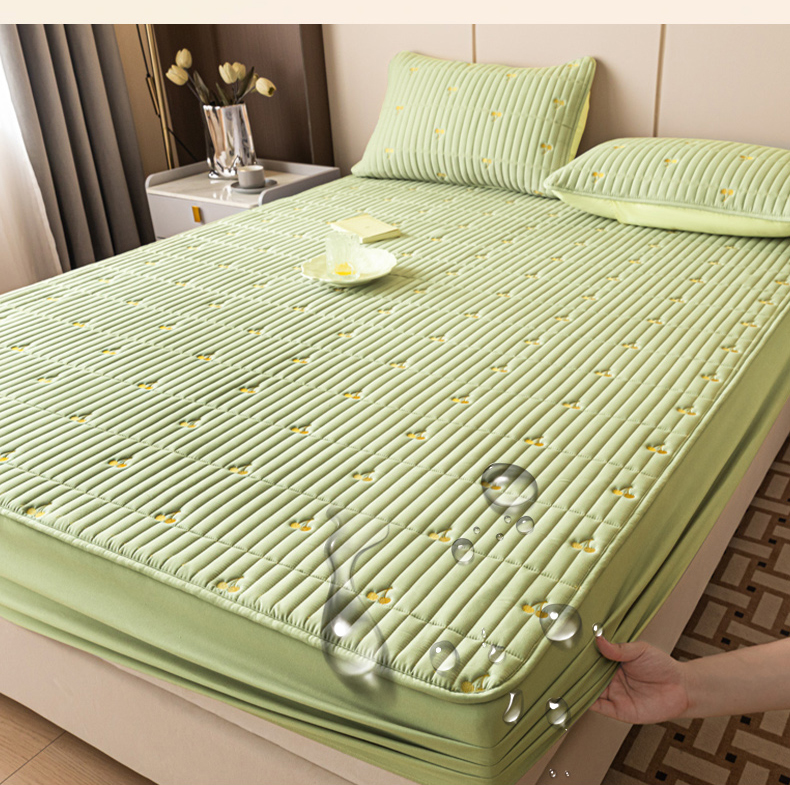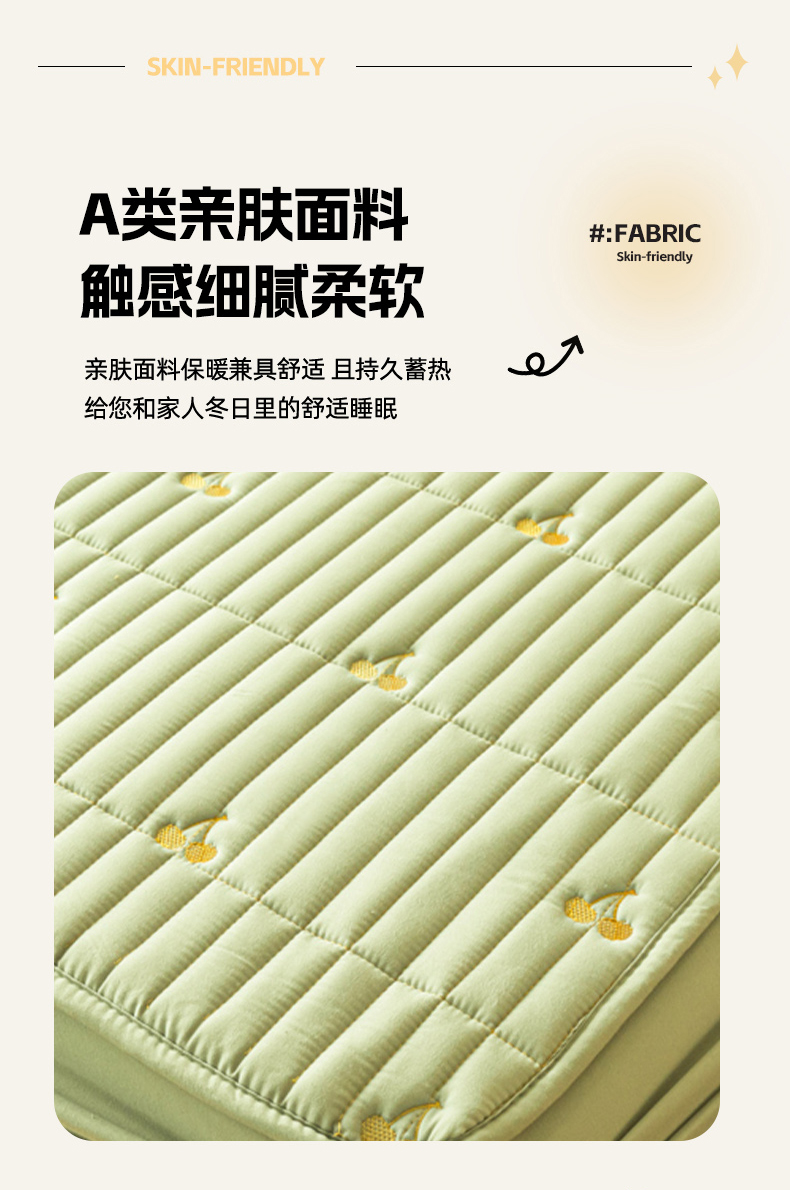 • 91家纺网 家纺一手货源 找家纺 暖季家纺 2025新款A类亲肤面料夹棉绣花床笠-不防水款 小樱桃-果绿-普通款