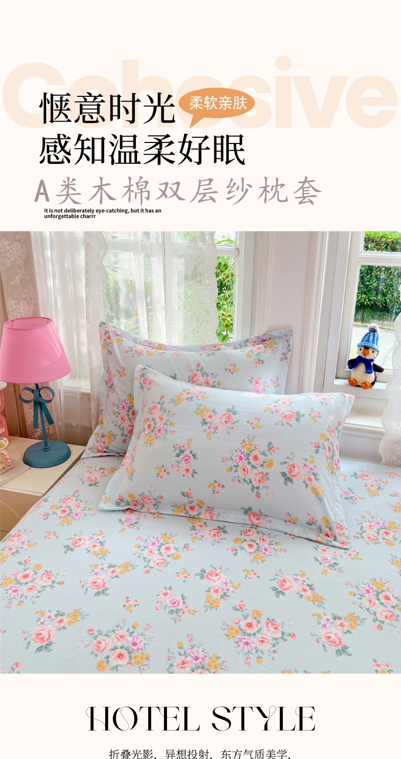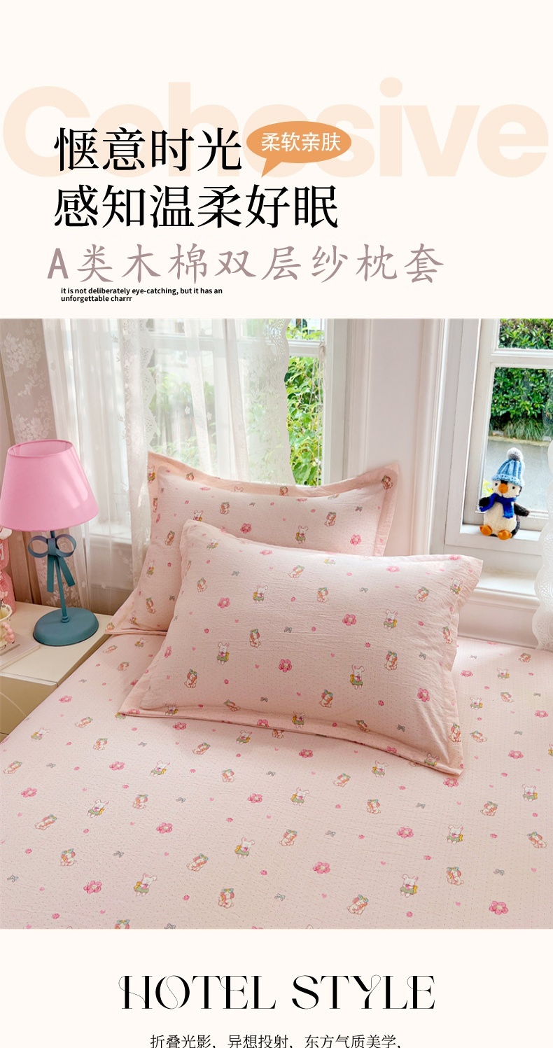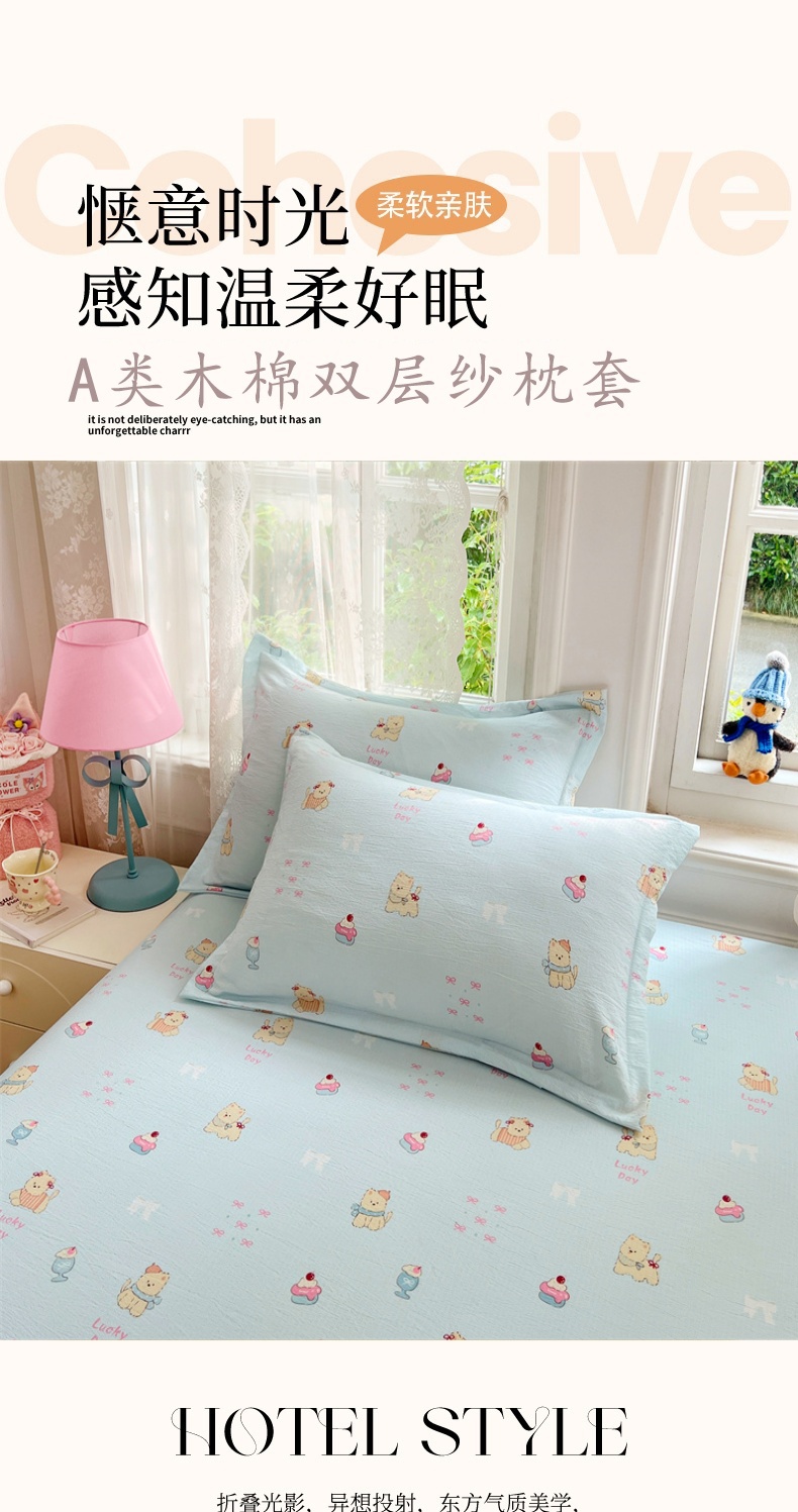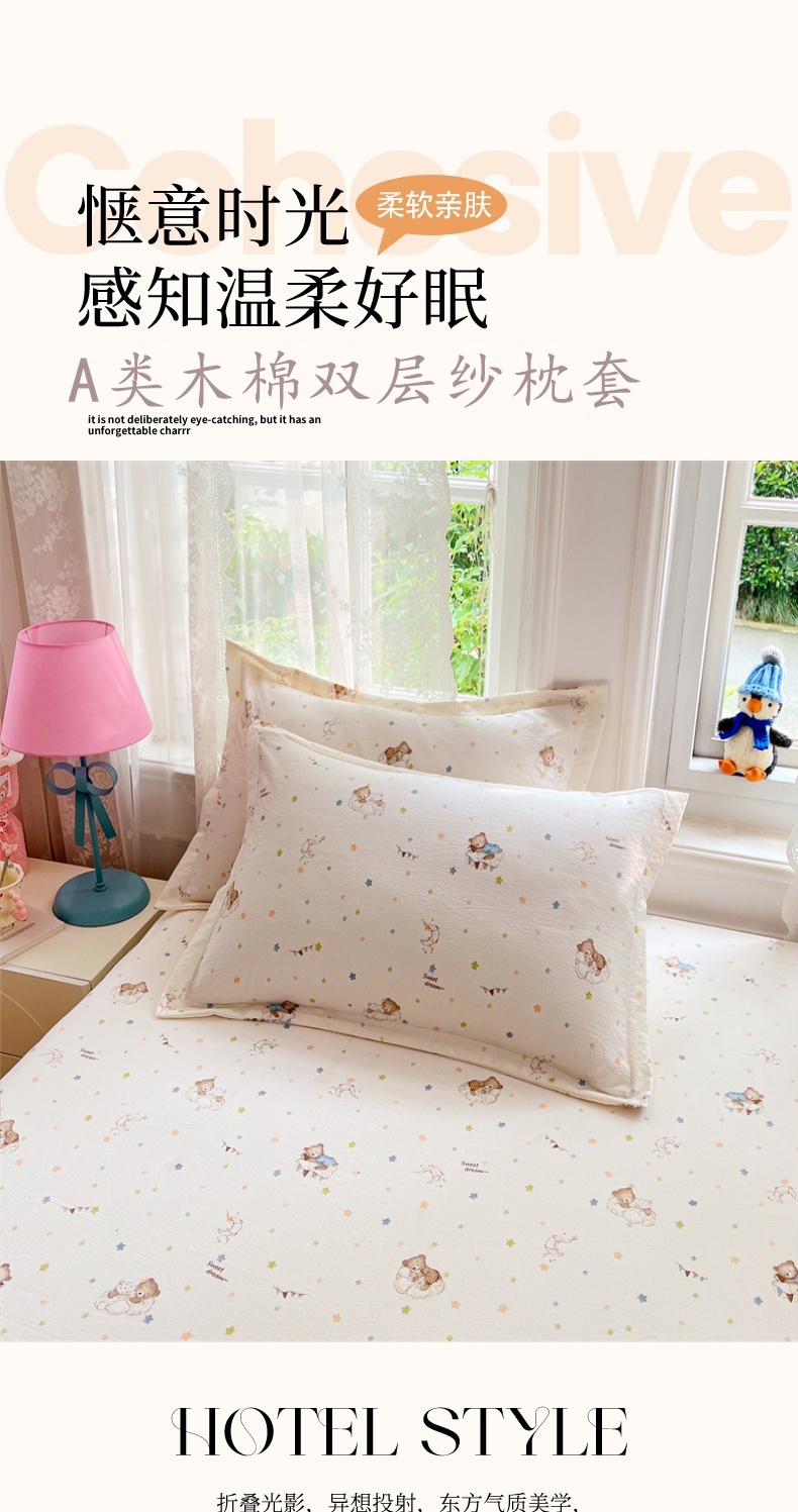 商品名称:(总)圣比熊 2025新款云感双层纱印花枕套宿舍单人枕芯套一对装枕头套