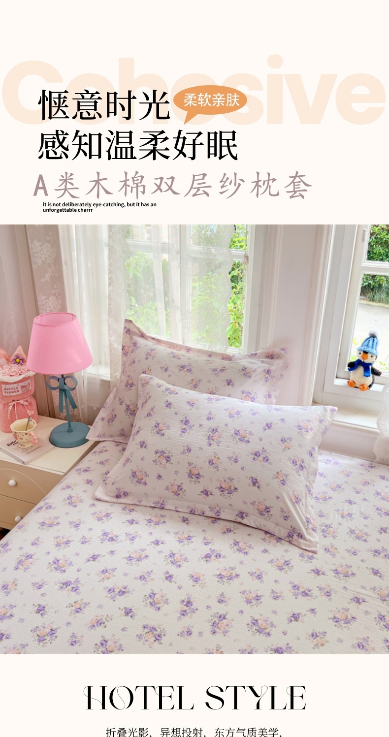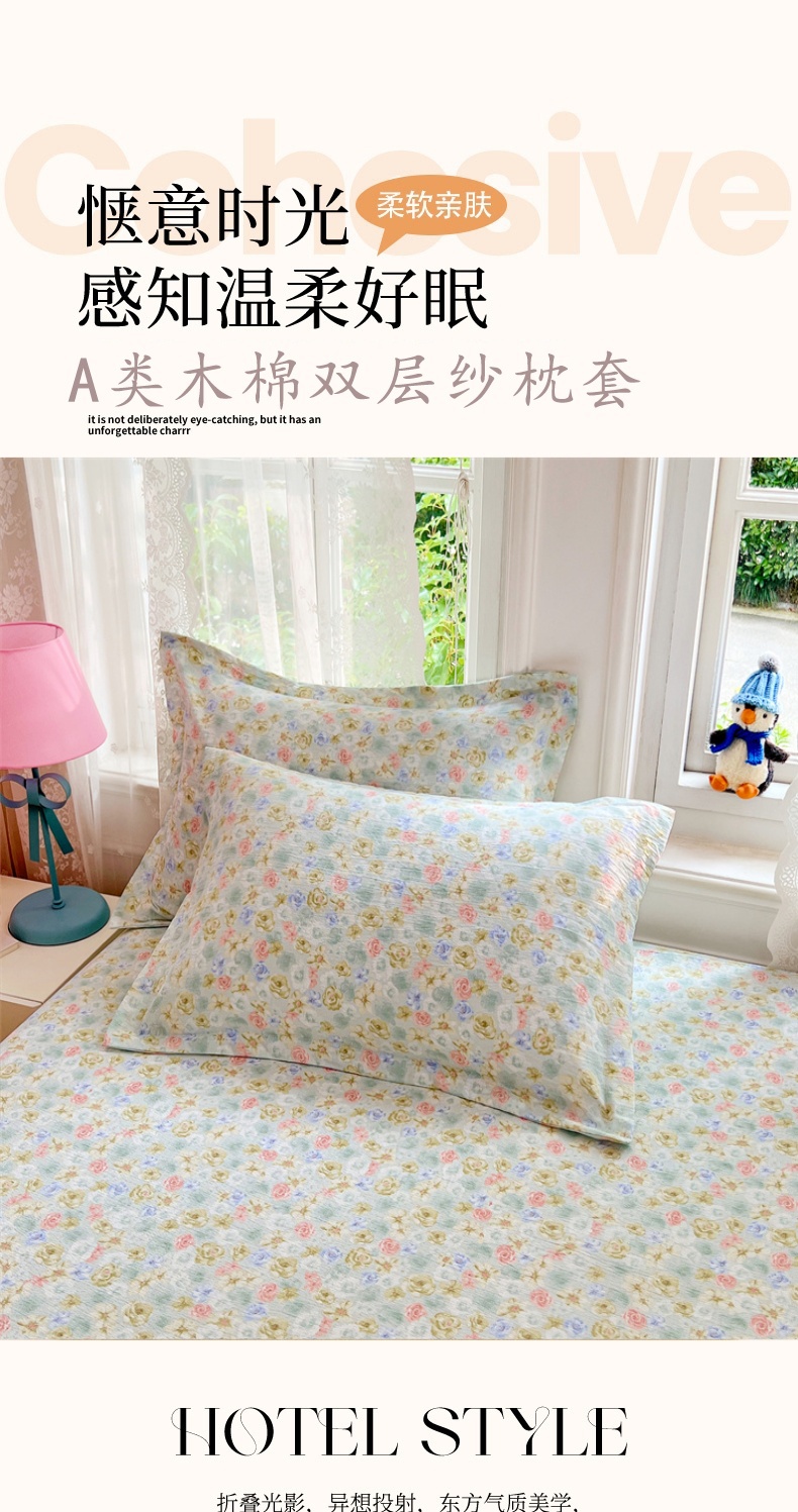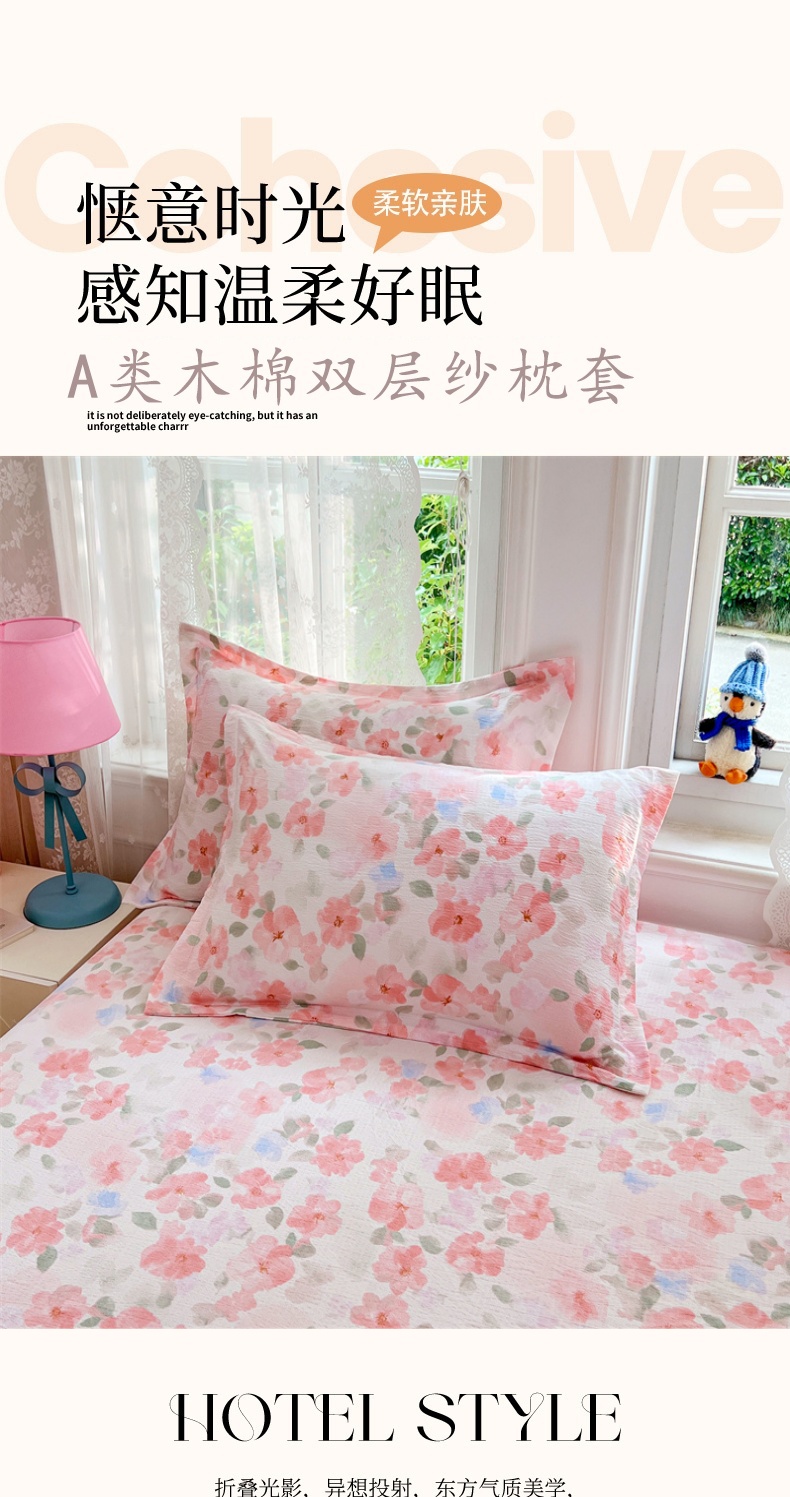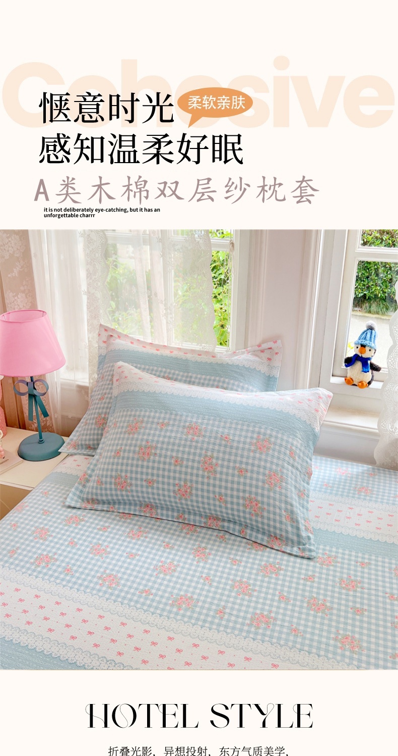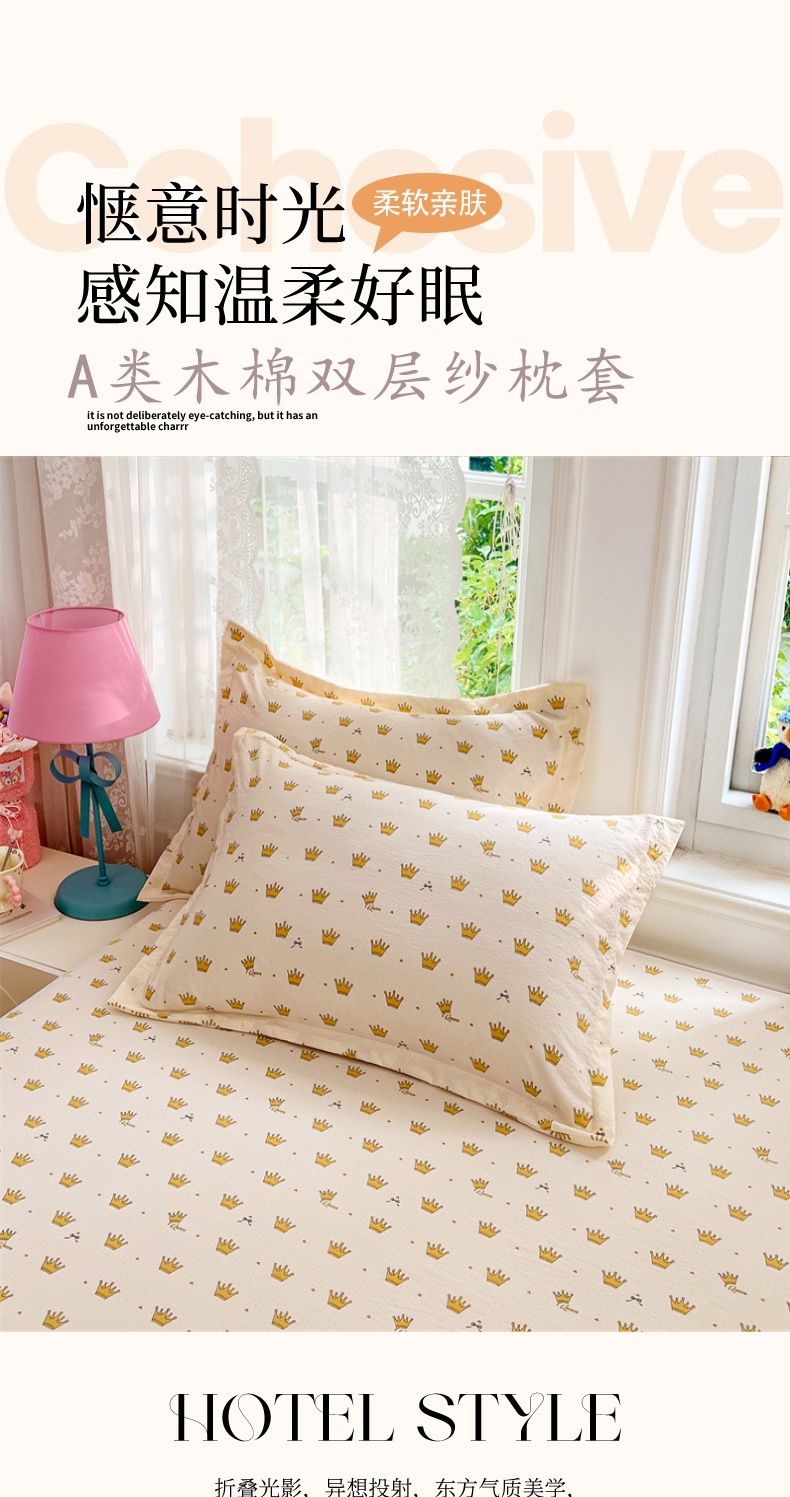 商品名称:(总)圣比熊 2025新款云感双层纱印花枕套宿舍单人枕芯套一对装枕头套