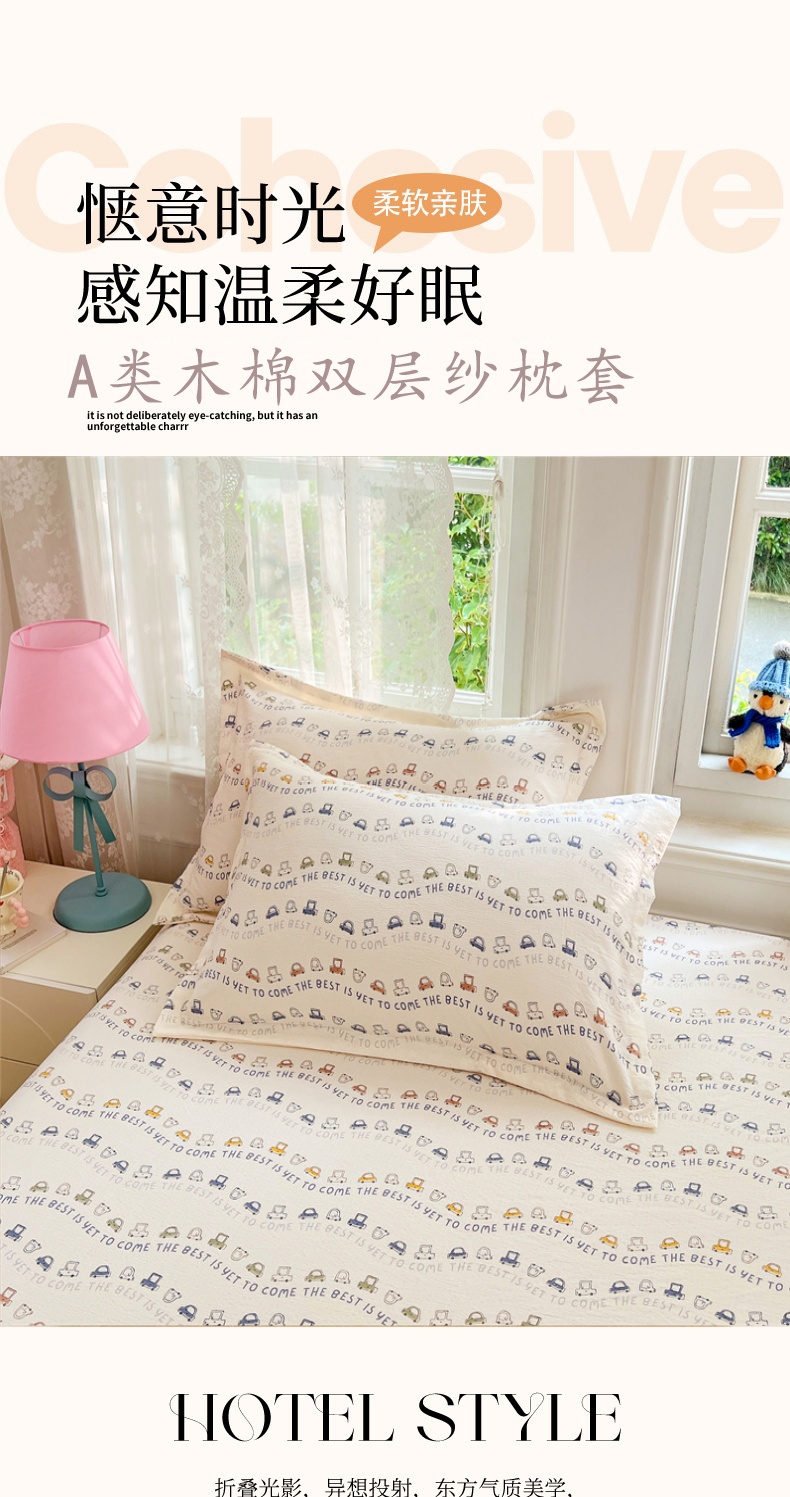 商品名称:梦舒羽 2025新款云感双层纱印花枕套宿舍单人枕芯套一对装枕头套 汽车世界