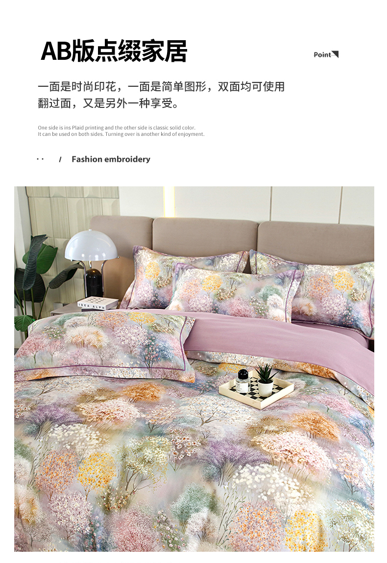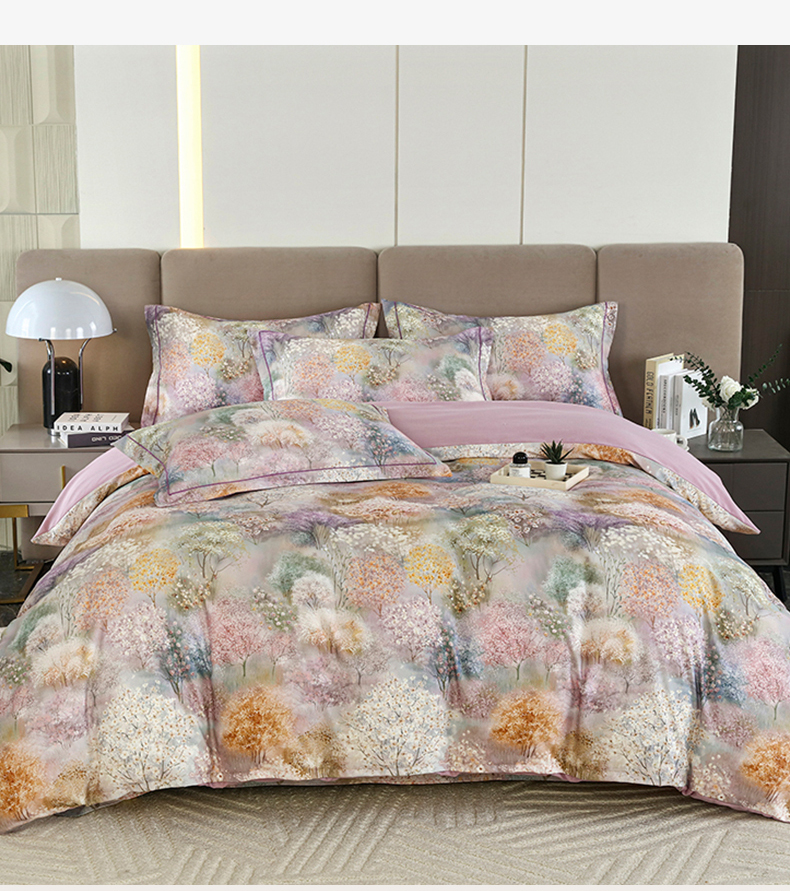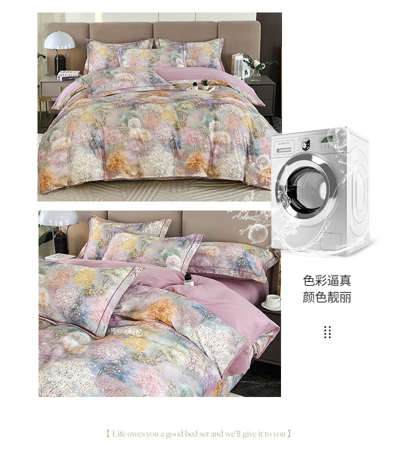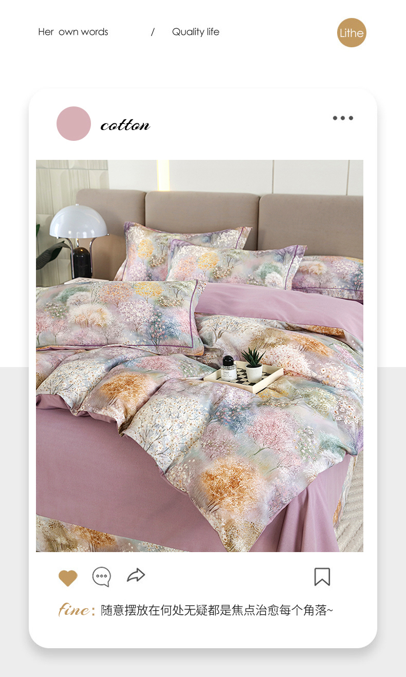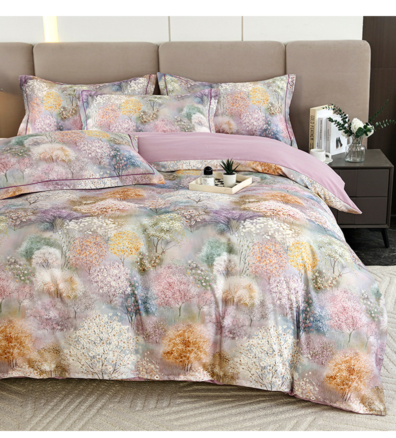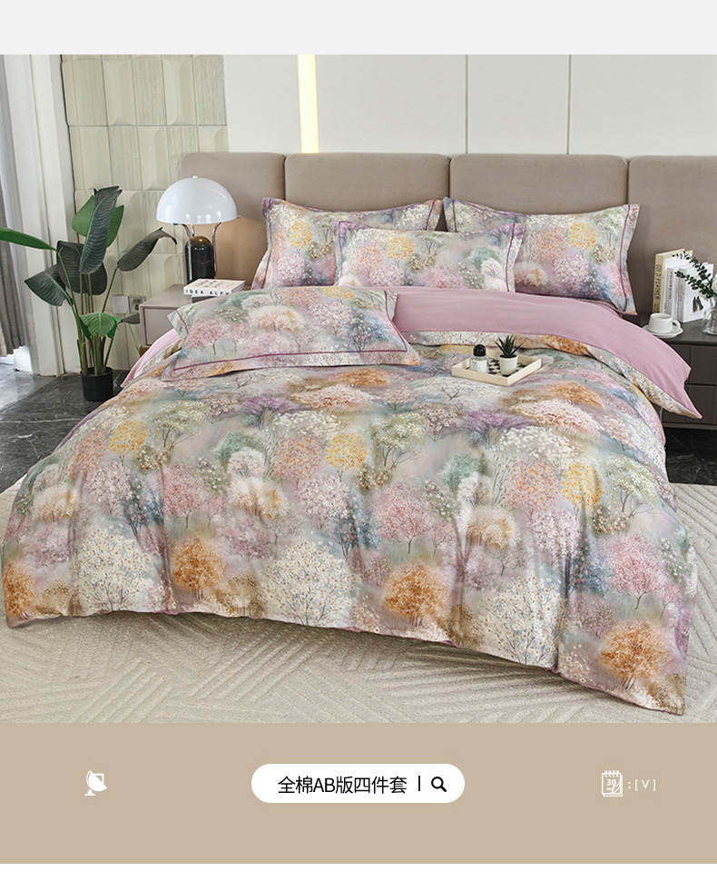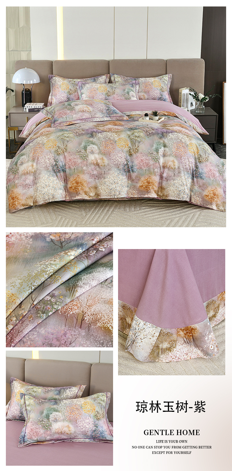 金纱玉纺 2025数码印花加厚四件套 琼林玉树-紫
