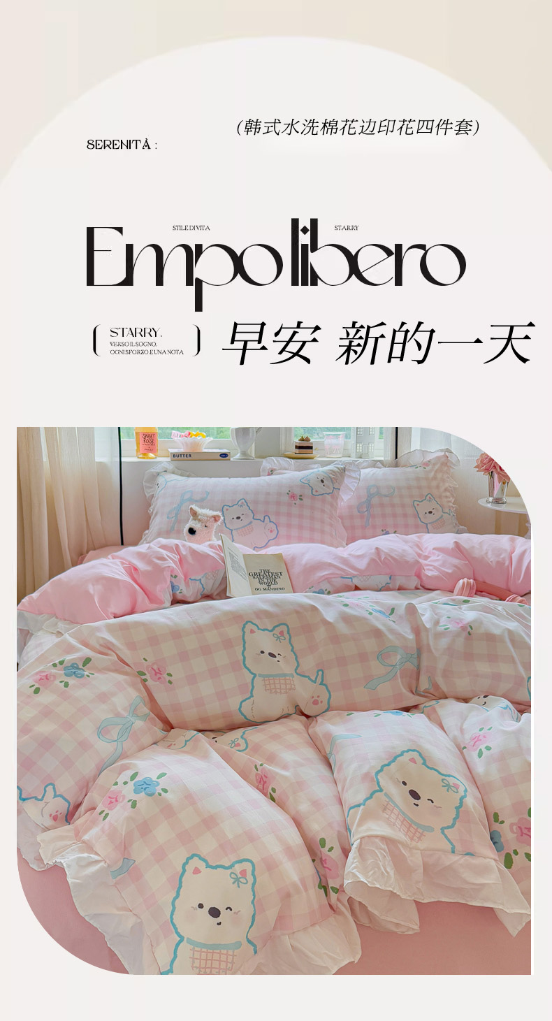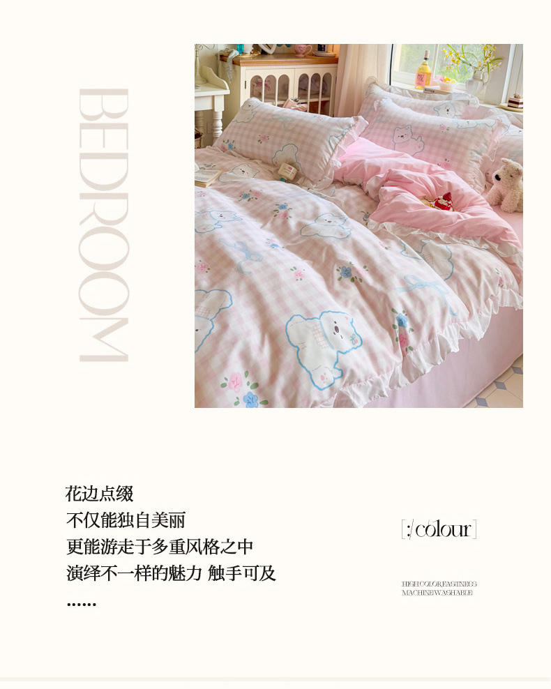 当前位置: 91家纺网 > 商品网购 > 床品套件 > 四件套 > 水洗棉四件套 > 慕澄家纺 2025新款小清新花边款水洗棉四件套-第二波 花边款-西高地