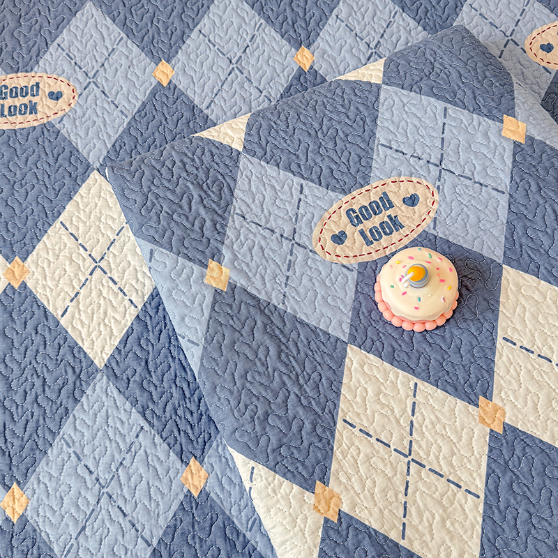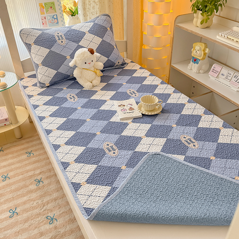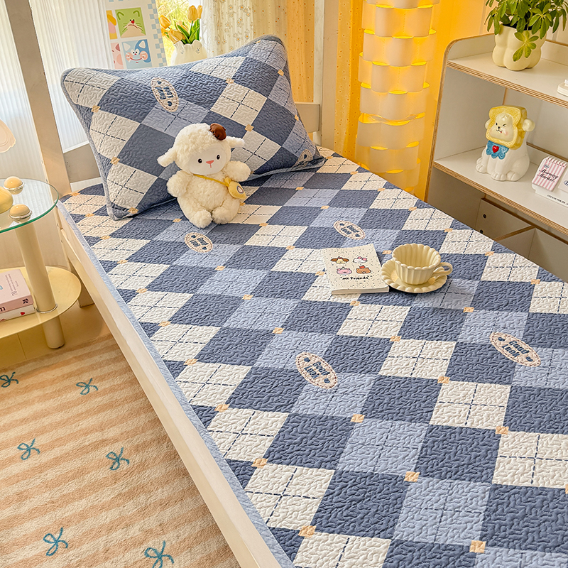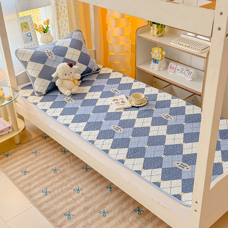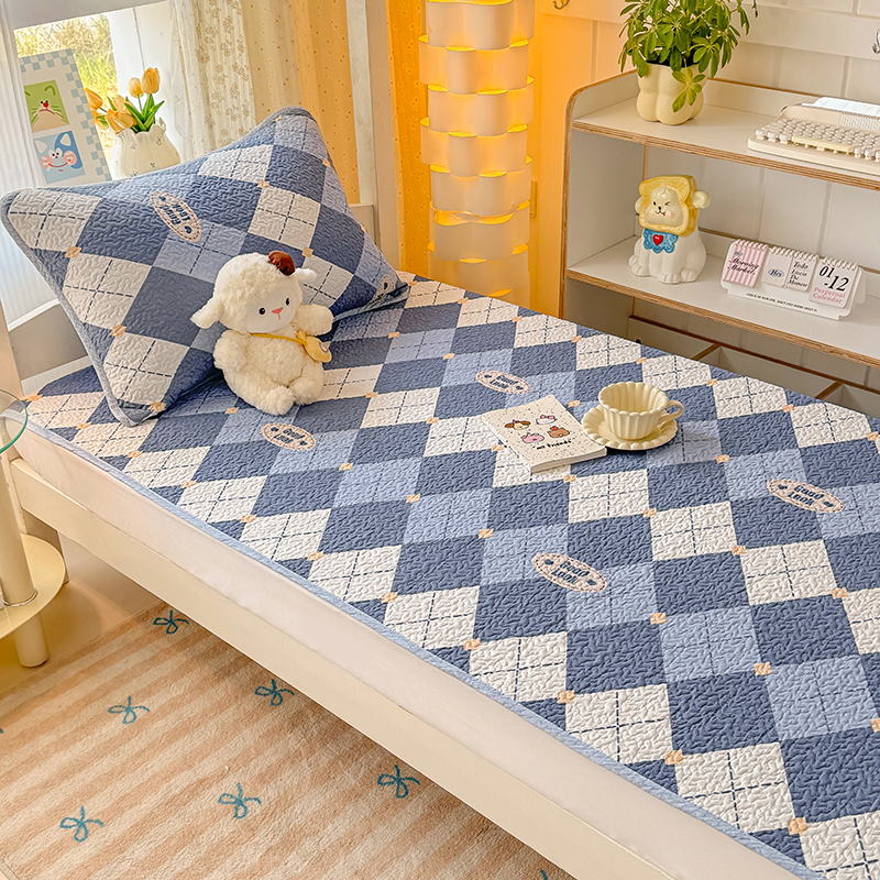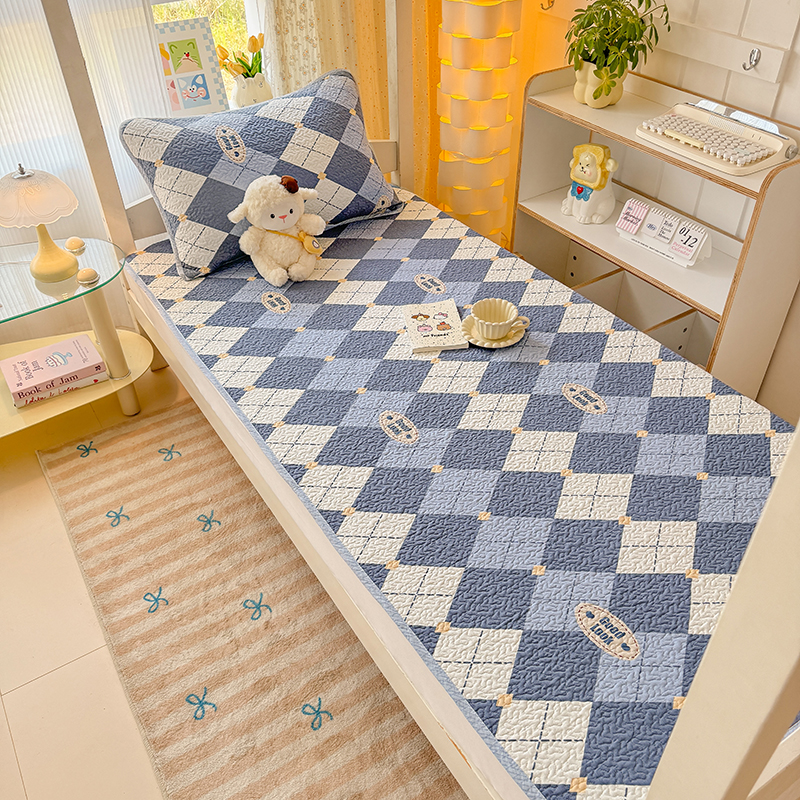 商品名称:期遇家居 2025新款13372全棉印花学生床盖双面纯棉宿舍床盖 蓝格子