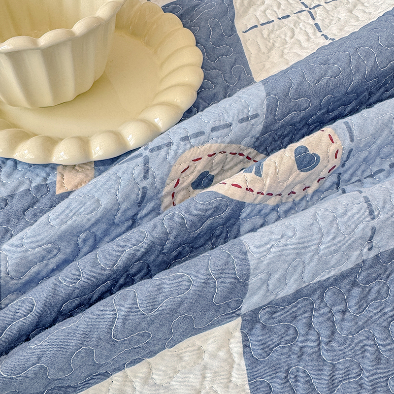 (总)期遇家居 2025新款13372全棉印花学生床盖双面纯棉宿舍床盖,百福熊,布偶兔,草莓兔,卡茜欧,蓝格子,律动爱心,摩登之恋,香香熊猫,紫葡萄