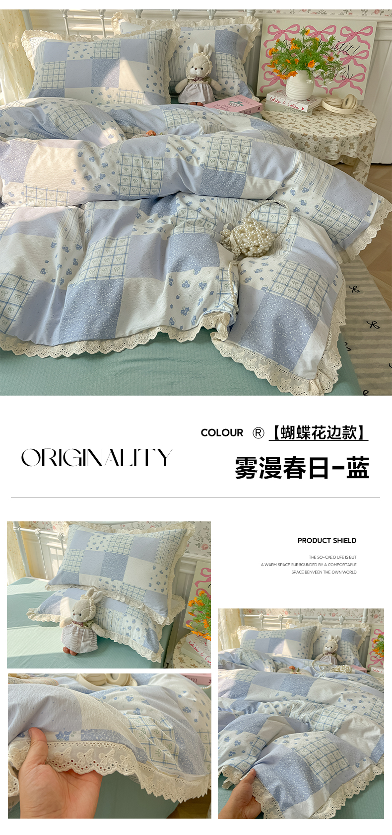 (总)韩巢家纺 2026新款少女心蕾丝花边款四件套,粉小格【蕾丝花边款】,草莓小波点【蕾丝花边款】,草莓小卷猫【蕾丝花边款】,粉小花【蕾丝花边款】,好多芝麻球【蕾丝花边款】,蓝灰波点【蕾丝花边款】,蓝小格【蕾丝花边款】,梨云杳杳【蕾丝花边款】,米黄波点【蕾丝花边款】,小花集【蕾丝花边款】,心动预演【蕾丝花边款】,芋泥紫波点【蕾丝花边款】