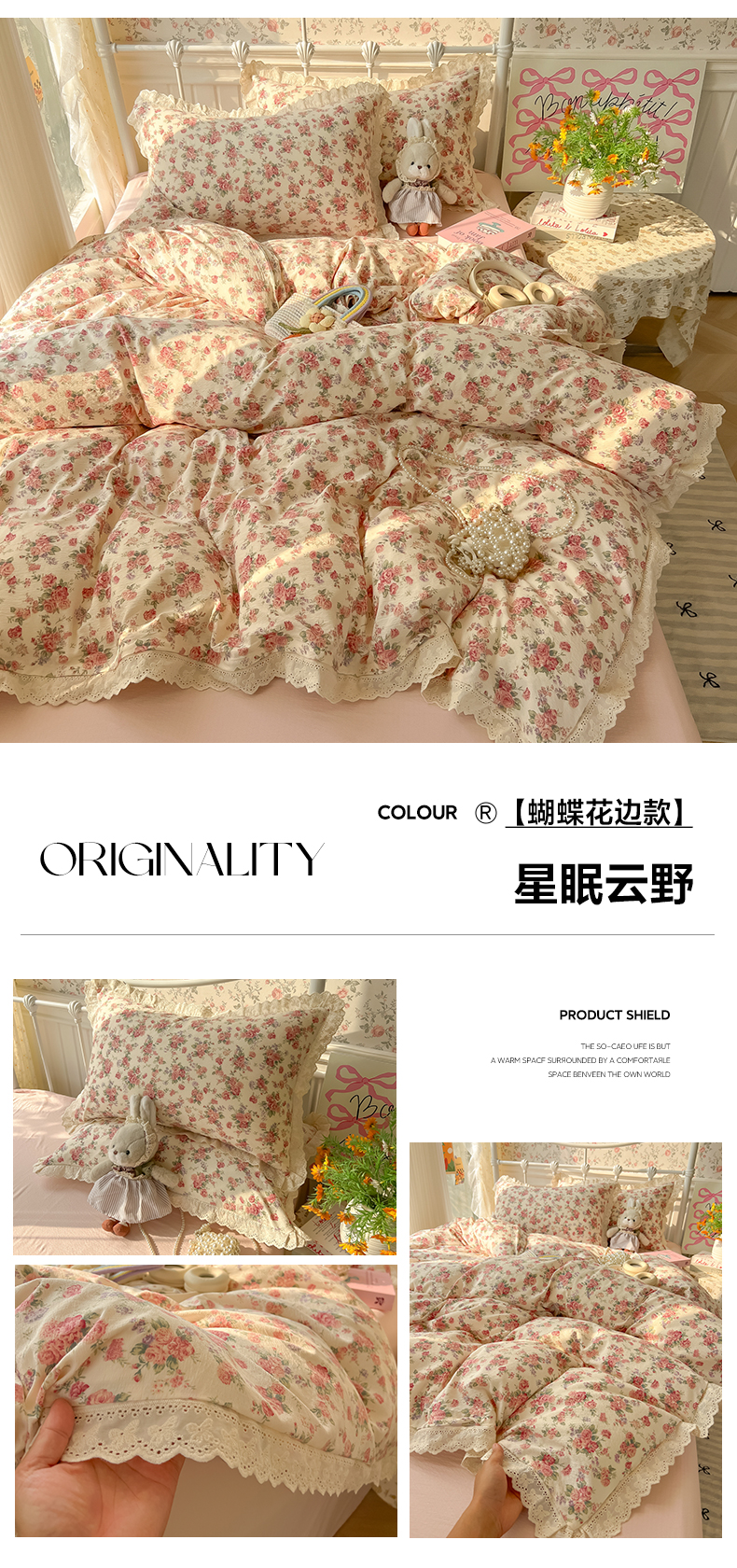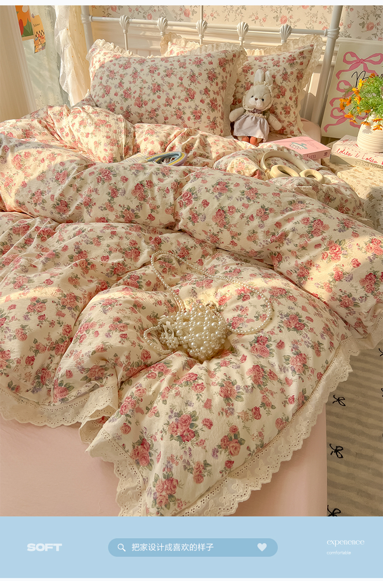 (总)韩巢家纺 2026新款水洗棉花边款四件套,灰蒙小狗【大花边款】,春日与玫瑰【大花边款】,繁花似梦【大花边款】,花时宇间【大花边款】,久期诗朵-黄【大花边款】,可可腊肠犬【大花边款】,奶油樱桃【大花边款】,软糖猫【大花边款】,甜樱恋曲【大花边款】,温暖粉心【大花边款】,小花野-紫【大花边款】,小熊冰淇淋【大花边款】,星梦蝶结【大花边款】,幸运可爱兔【大花边款】,摘樱桃的小熊【大花边款】