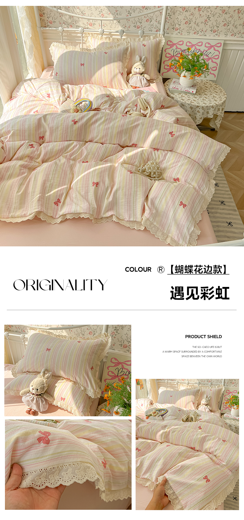 商品名称:(总)韩巢家纺 2025新款蝴蝶花边直播热销款四件套开学季韩系学生宿舍床上三件套-(提供卖家秀)
