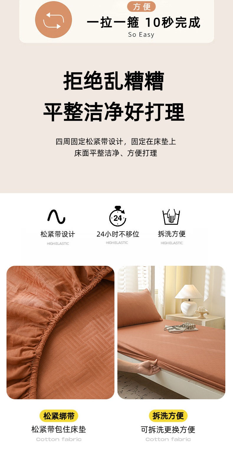 • 91家纺网 家纺一手货源 找家纺 简宜家居(朝初家纺) 2025新款60支贡缎提花A版纯棉床笠 简约-咖