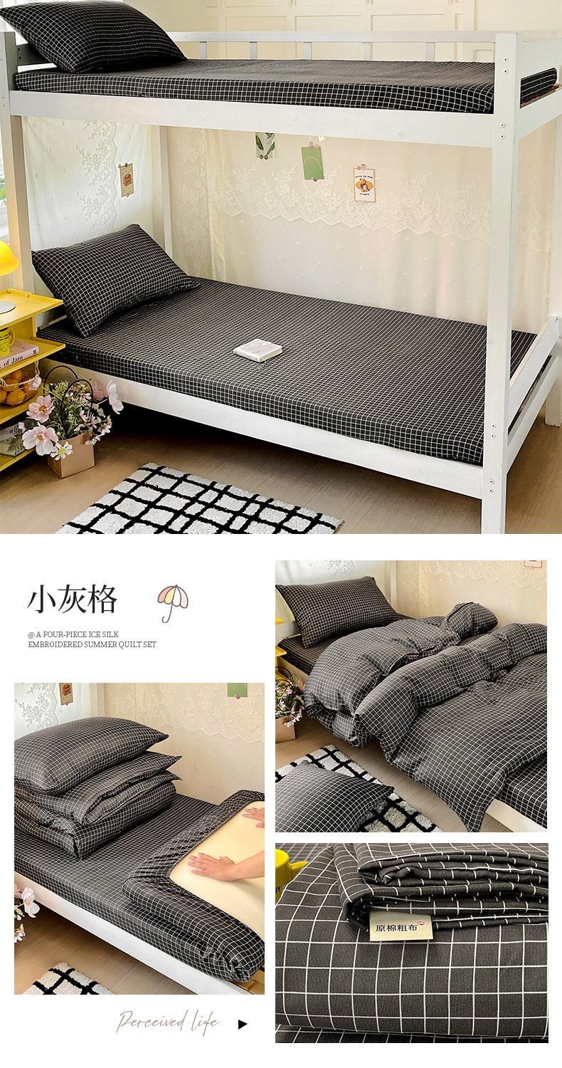 • 91家纺网 家纺一手货源 找家纺 花伞家居 2025新款学生床加厚磨毛印花单品单床笠单床单 小灰格